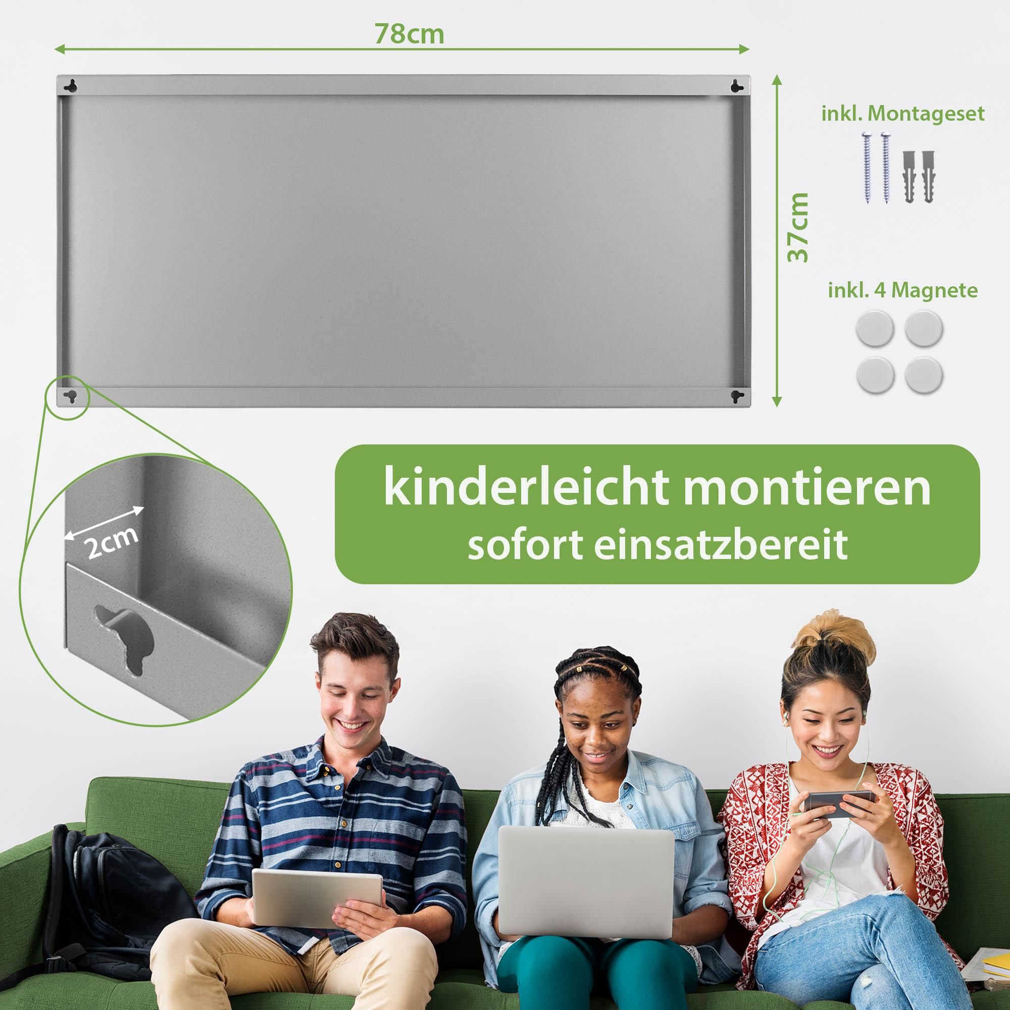Magnetwand / Pinnwand / Wandtafel inklusive 4 Magneten. Produkt: Magnetwand / Pinnwand / Wandtafel [sehr stark magnetisch - es halten auch schwache Magnete daran]. die Magnetwand ist beidseitig pulverbeschichtet DESIGN Die magnetische Tafelwand ist ein eleganter Begleiter im Alltag. Magnetische Oberfläche Fotos, Termine, Notizen oder Rezepte lassen Sich hier stilvoll mit den beigefügten Magneten ordnen, Sie behalten alles im Blick. Bilderdepot24 Magnettafel Küche grün Dschungelkönige im Nebel, (1-tlg Pinnwand Kork Banjado Magnettafel 78x37cm Magnetwand Schwarz Aus Metall Magnetpinnwand Pinnwand Inkl 4 Magnete Motiv Patina Gruen Magnete Für Magnettafel Die aufgebrachte Motivfolie ist mit einem Schutzlaminat überzogen, wodurch sie UV-Resistent und stoßfest ist. Magnettafel Magnetwand inkl. 4 Magnete (grün, 40 x 60 cm) Marke VIELSEITIG Sie können die Magnet Tafel auch dekorativ als Wandbild nutzen, es halten alle handelsüblichen Magnete daran.