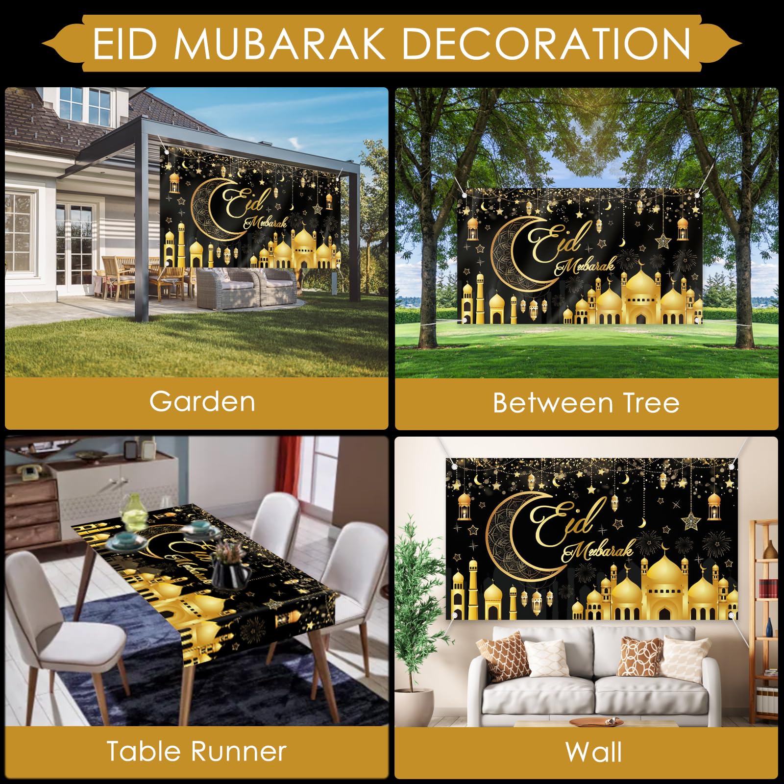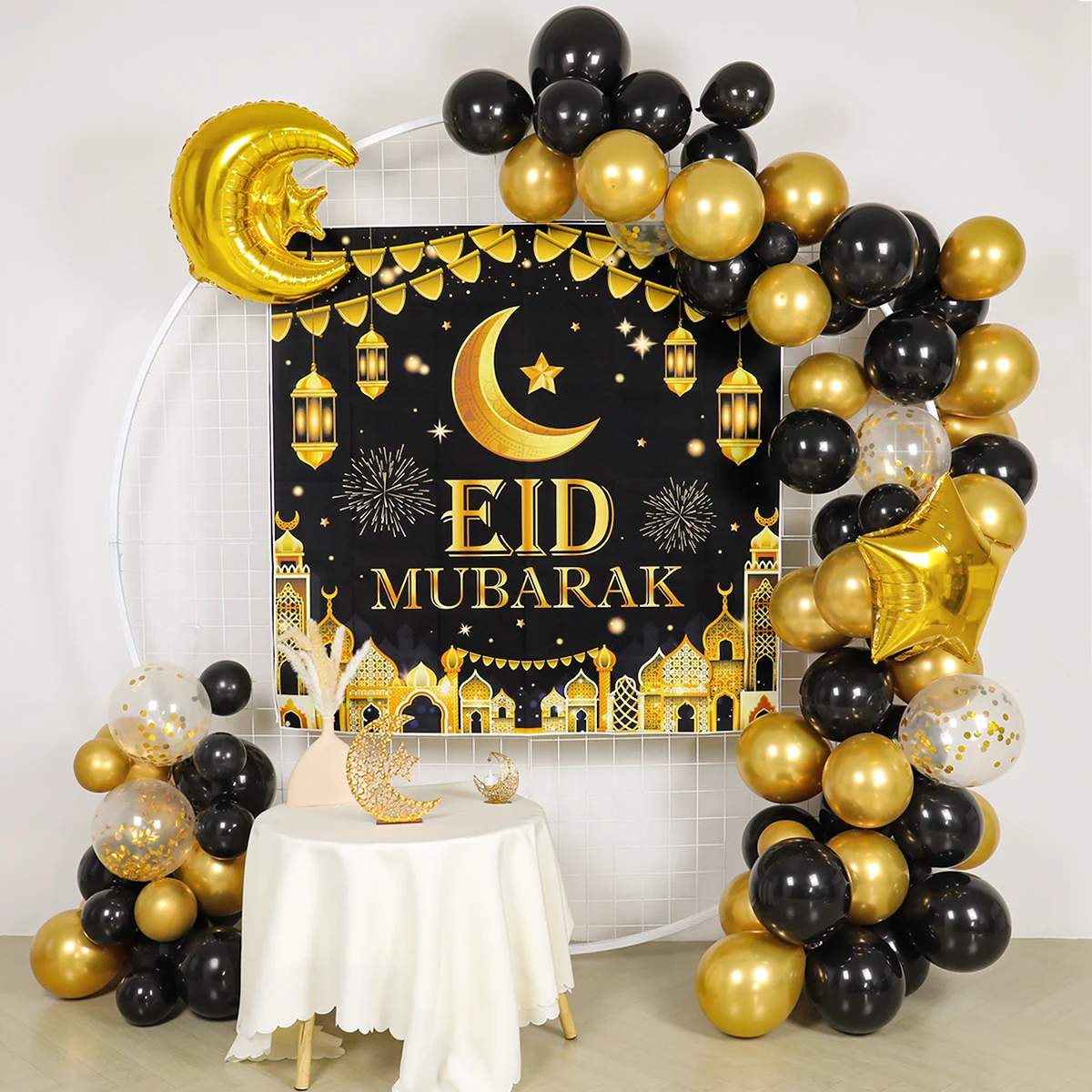 Ramadan Hintergrund Banner, 180 X 110cm Schwarz Gold Eid Mubarak