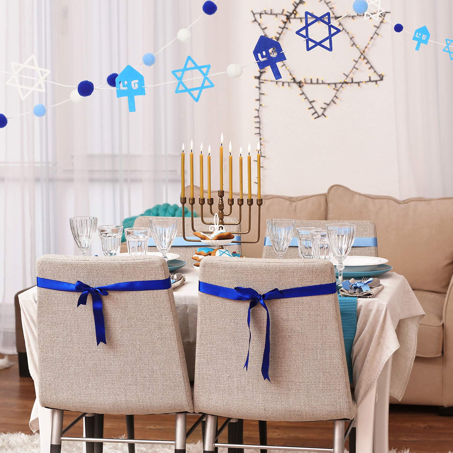 Langlebige Qualität ermöglicht eine lange Verwendung des Banners. 【Benutzerfreundliches Design】Die Oberseite des Verandabanners ist vorinstalliert mit einer Schnur, die an eine Vielzahl von Orten angepasst ist, Sie können das Banner einfach ohne zusätzliche Operationen aufhängen. Merkmale: Artikel: Hanukkah-Banner., Größe: 50 x 300 cm., Material: hochwertiges Polyestergewebe. Hinweis: Bitte achten Sie auf die Größe des Produkts. 【Keine Angst vor Sonne und Regen】 Das Hanukkah-Veranda-Schild ist sorgfältig aus zugfestem Stoffmaterial und hochwertigem Druck gefertigt, leicht mit verschiedenen Wetterbedingungen wie regnerische und sonnige Tage zu bewältigen, leuchtenden Farben und verblasst nicht leicht und altert nicht. 【Geeignete Größe】 Die Chanukkah-Banner sind in der Größe von (50,8 x 300 cm) / (50,8 x 300 cm) / das große Design ermöglicht es Ihnen, es in einer Entfernung zu lesen, und ideal zum Aufhängen auf der Veranda, Tür, im Garten, an der Wand, im Innenbereich und überall wo Sie dekorieren möchten. Banner Selbst Gestalten Happy Chanukkah-Banner - Blaues Willkommensschild Für Den Außenbereich Hanukkah Decorations Product Details The Hannukah banners measure approx. 2.5m long, they are made of felt, durable for a long time, and the surface is soft to touch... Wir bieten ein tolles Einkaufserlebnis mit schneller Logistik und großem After-Sales-Service. Happy Hanukkah Banner, Hanukkah Home Dekor, Dekoration für