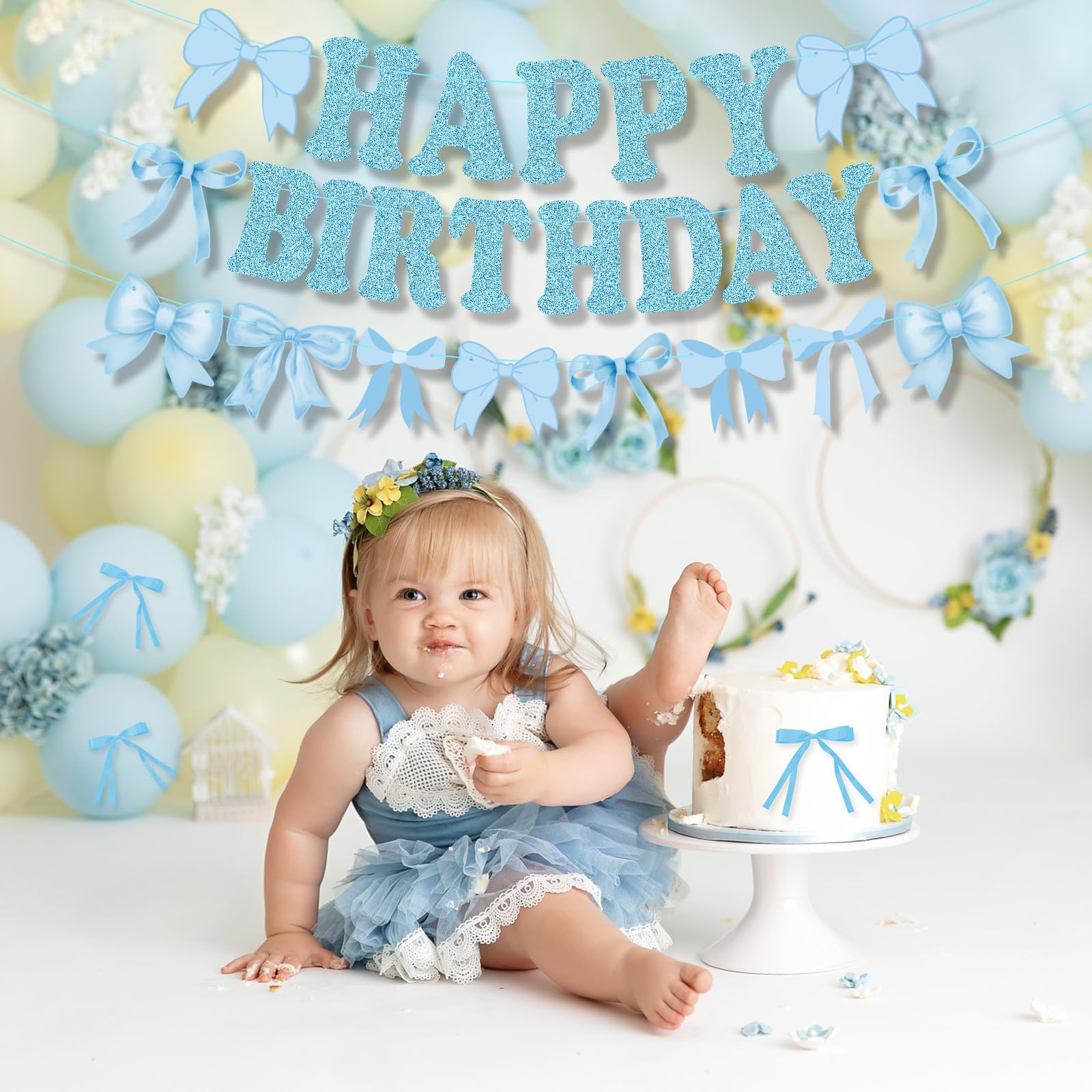 Schleife Happy Birthday Banner Girlande, Vorbespannte Blau Kokette Schleife Geburtstag Banner Für Schleife Geburtstag Party Dekorationen, Kokette Geburtstag Dekorationen, Bogen Party Dekorationen
