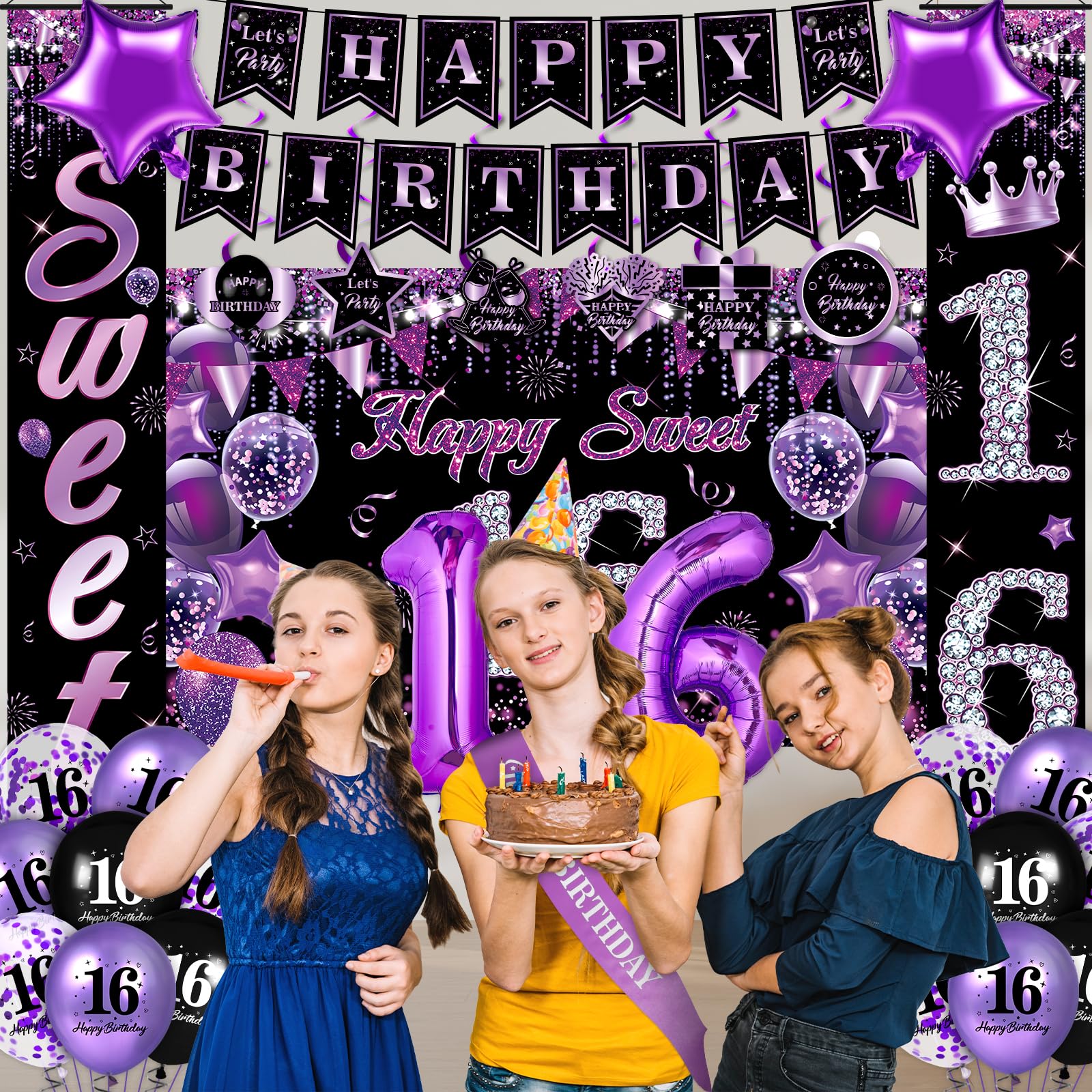 Halodete Sweet 16 Banner, Mädchen-Banner Zum 16. Geburtstag, 16
