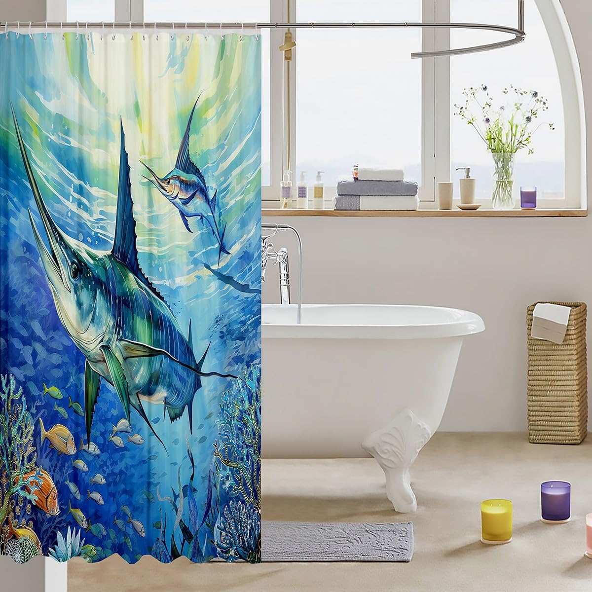 Feelyou Barsch Fisch Duschvorhang Kinder Angler Stoff Badezimmer