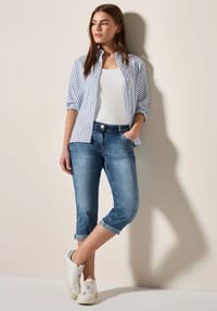 Cecil Jeans Style Scarlett im Casual Fit, Slim Legs und Middle Waist Damenjeans in vielen Farben online bestellen | Online-Shop Produktbeschreibung Eine CECIL Jeans ist wie Ihre neue beste Freundin – für jeden Spaß zu haben, stets bequem und schmeichelnd. Finden Sie unter unseren bekannten Styles wie Toronto, Scarlett oder Charlize den passenden Fit, der Sie perfekt in Szene setzt und zu Ihrer Persönlichkeit passt. Dank elastischer Qualitäten sind nicht nur diese, sondern alle unsere CECIL Denims zudem äußerst bequem und bieten einen fantastischen Tragekomfort– lassen sich von Ihrer neuen Lieblingsjeans überzeugen!, Warnhinweise false Ein gern gesehener Trend Klassiker ist hierbei die moderne High Waist Jeans, die mit ihrem hohen Bund an der Hüfte und an der Taille schmal sitzt und somit optisch jeder Silhouette schmeichelt. Casual Fit Hosen für Damen online kaufen | CECIL Jeans Neue Kollektion Cecil Damen B375281 Jeanshose, Basic Black Wash, 25W / 30L EU Jeans Neele Egal ob im Sommer zum T-Shirt, modisch zur Printbluse oder lässig zum Blazer - ständig erleben unsere Jeans neue Trend-Updates und lassen sich stets vielseitig kombinieren. 59,99 € 34 CECIL Jeanshose, 5-Pocket, High Waist, für Damen 59,99 € 27/28 31/28