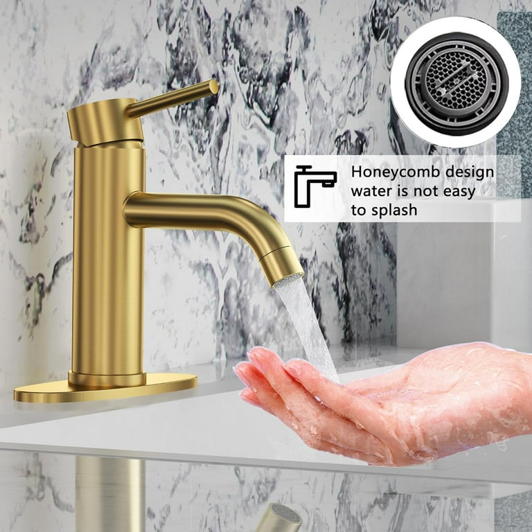 Kann diesen Wasserhahn installieren oder Sie müssen das Loch bohren Der Lochdurchmesser Ihrer Spüle: 3,3 - 4,5 cm. Kurzer Stil und geeignet für Waschbecken Wasserhahn Bad Gold Antique Brass Bathroom Basin Faucet Single Handle Swivel Spout Bas Antique Bathroom Sink Faucet Bathroom Faucet Brushed Gold Single Hole Faucets