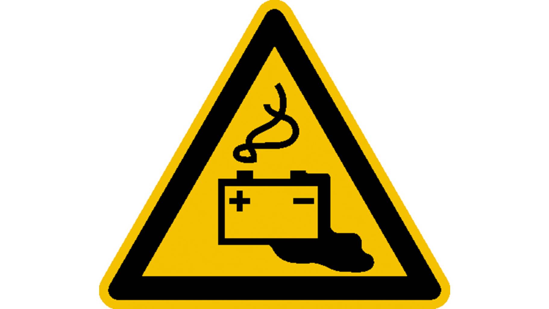 Warnschild Gefahren Durch Das Aufladen Von Batterien Folie Selbstklebend 315mm Iso 7010 1st