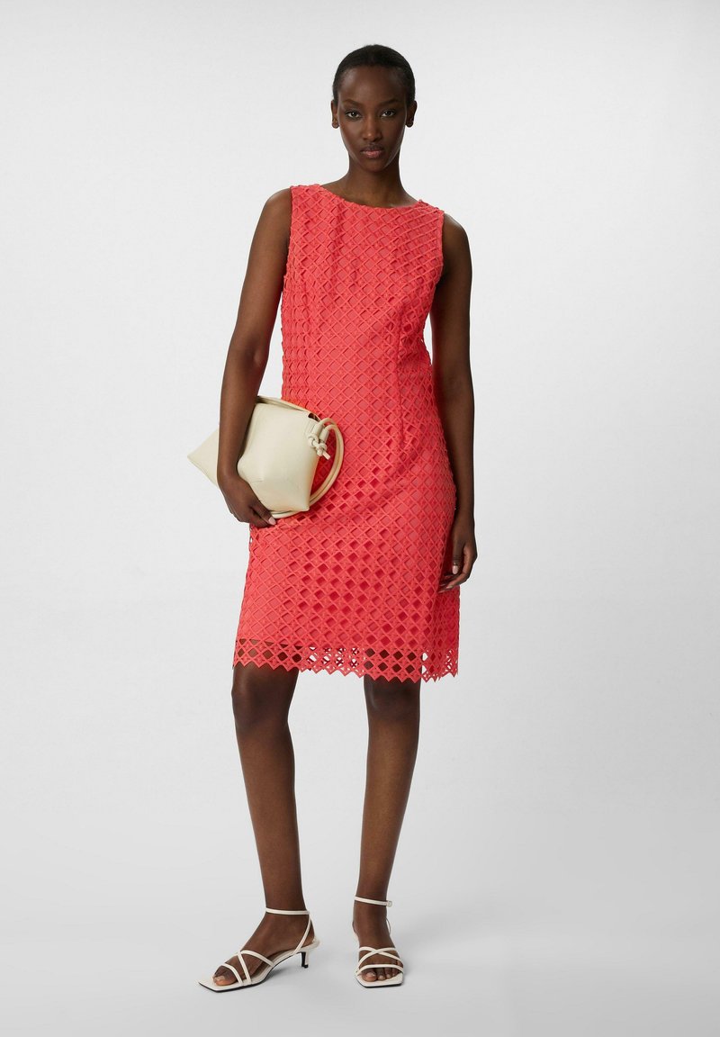 Sommerkleid Comma Comma Minikleid Kleid Aus Baumwollsatin Ziernaht, Elastisch, Das Futter Ist Aus Taft, In Hochwertiger Qualität Comma Kleid Damen Lässige Eleganz für den Sommer: Dieses Kleid mit Riegel-Detail und Kappärmeln sorgt für einen klassisch-femininen Look. Aus elastischer Webware gefertigt, umspielt es Ihre Silhouette und verleiht Ihnen einen schlanken Stil Blusenkleid mit Transparenz-Effekt und Glitzergarn - Schwarz | Comma Rundhalsausschnitt, Bindedetail vorne, Allover-Print, Kappärmel Der Rundhalsausschnitt und die Midilänge machen es zum perfekten Piece für Casual-Anlässe - lässig oder aufgedresst, Sie entscheiden. Kleid mit Riegel-Detail und Kappärmeln | 2147981.12A9.32 Material: Außenmaterial: 95 % Polyester, 5 % Elasthan; Futter: 100 % Polyester Pflegehinweise: 30°C Pflegeleicht. Nicht heiß bügeln