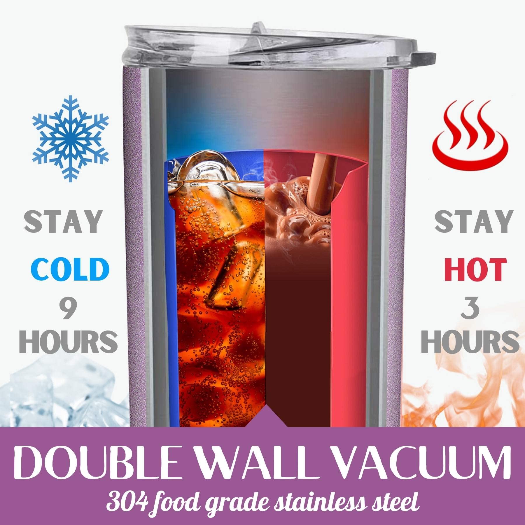 Cenfoliy Edelstahl Becher Mit Strohhalm Und Deckel, 17oz/500ml Vakuum