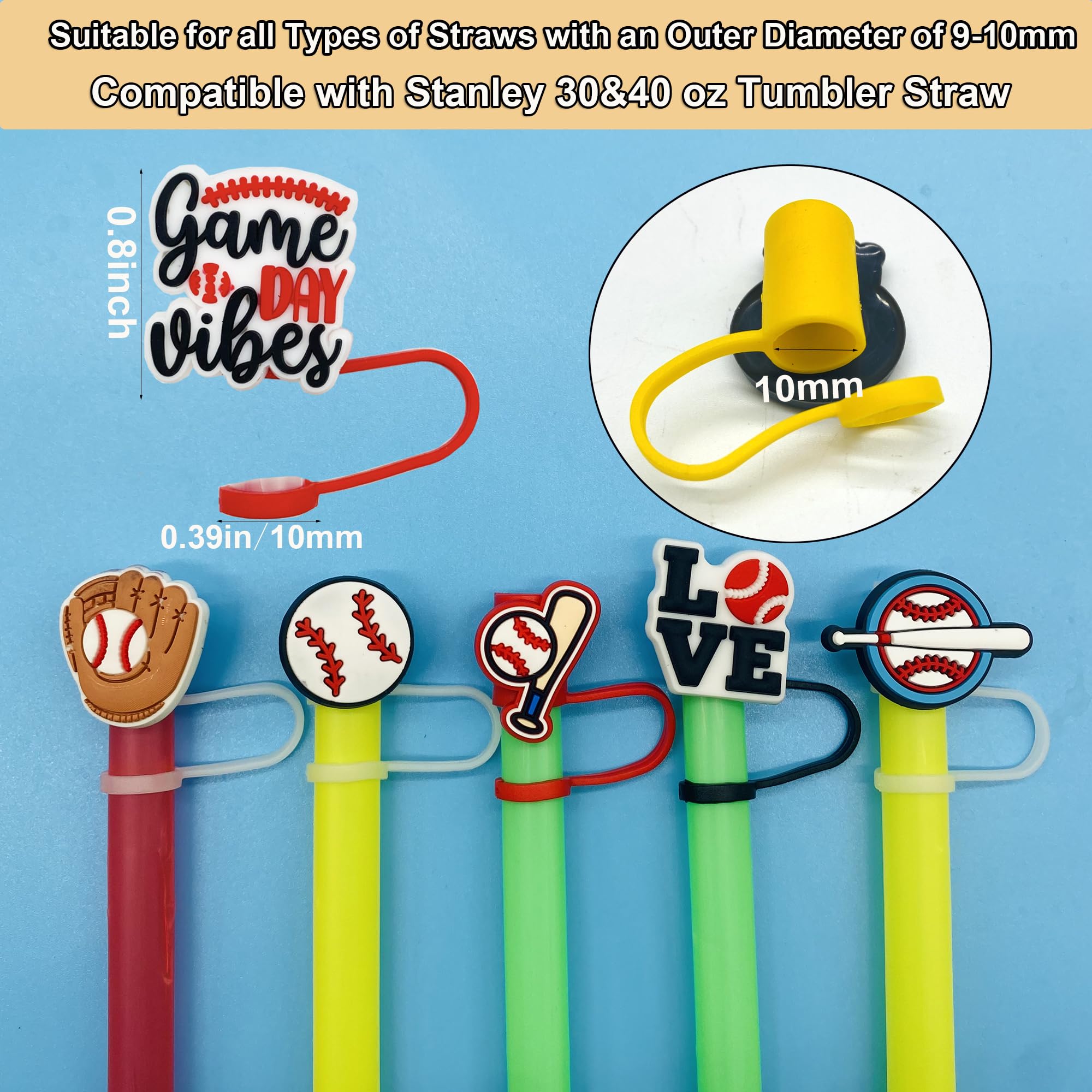 Baseball-Trinkhalm-Abdeckkappen Für Stanley-Becher, Niedlicher Silikon- Trinkhalm-Aufsatz Für Stanley 30 Und 1,2 L Trinkbecher, 10 Mm, Staubdichte, Wiederverwendbare Spitzen-Deckel, 10 Stück