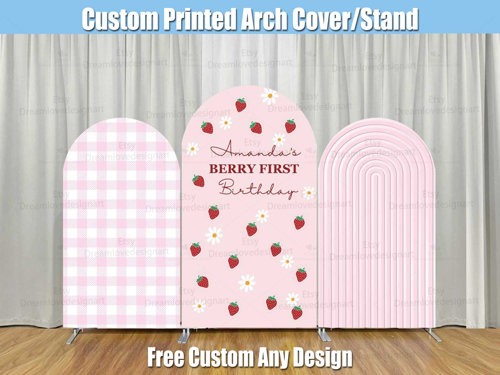 Erdbeerbogen Backdrop Cover Stand Beere Erste Geburtstagsparty Benutzerdefinierte Rosa Babyparty Gewölbte Chiara Wandpaneele Personalisierte - Schweiz