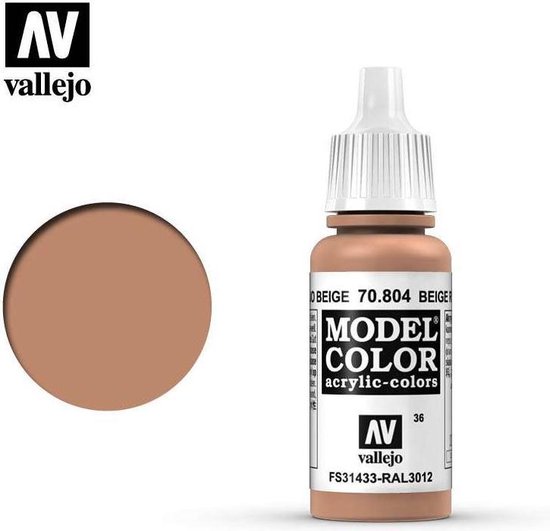 Durch Beimischung von Matt-Medium (70540) kann dagegen eine matte Transparenz erreicht werden. Die Model Color Transparent-Farben trocknen glänzend auf und lassen den bemalten Untergrund durchschimmernsie werden unverdünnt für Fensterscheiben, Laternen, Scheinwerfer usw. Für den Gebrauch mit einer Airbrush wird empfohlen die Farben im Verhältnis 1/1 mit Airbrush Thinner (71261 17ml, 71361 60ml, 71161 200ml) zu verdünnen. verwendet und sie werden durch Beimischung von Glanz-Medium (70470) noch glänzender und transparenter. Die Farben können mit Wasser oder mit Vallejo Thinner (70524) verdünnt werden. Malmittel: Eine Reihe von Malmitteln können die Eigenschaften der Farben verändern. Einleitung: Model Color sind opake und hoch pigmentierte Acrylfarben auf Wasser-basis, die speziell für die Verwendung mit Pinseln an Modellen und Miniaturen aus Kunststoff oder Metall entwickelt wurden. Vallejo Farben Beige 18ml - Model Color (131), 2,79 Airbrush Farben Vallejo Es handelt sich um Acrylfarben aus Wasserbase für Plastik-Modellbau. Die Vallejo Model Color Farben eignen sich hervorragend für das Auftragen mit dem Pinsel und bietet satte Farbe mit matter Fläche Wenn die Farbe vollständig getrocknet ist, ist sie permanent und wasserfest. Das vorgestellte Produkt ist eine Acrylfarbe aus der Serie Model Color mit einem Inhalt von 17 ml, in der Farbnuance Beige Red, entsprechend den Bezeichnungen FS 31433 und RAL 3012 Firnis: Die Model Color Lacke können mit dem Pinsel oder einer Airbrush angebracht werden., Sie trock, Wasserfest 70.803 Brown Rose (18ml) kaufen - Acrylfarben Vallejo