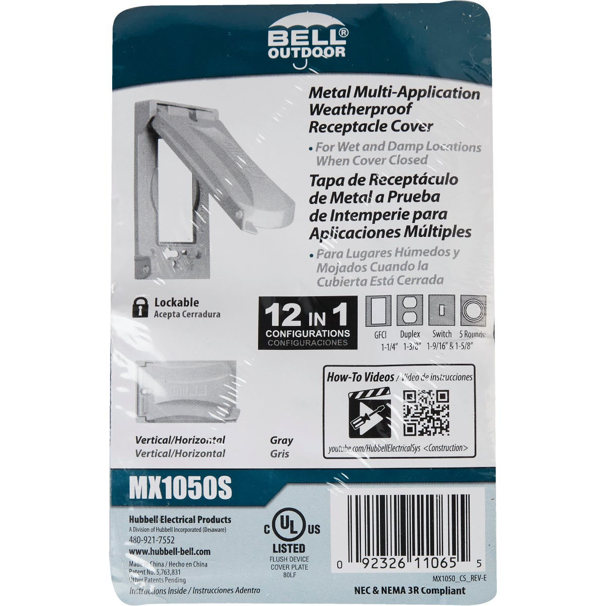 Bell Single Gang Rectangular Die-Cast Metal Gray Outdoor Box Flip Cover