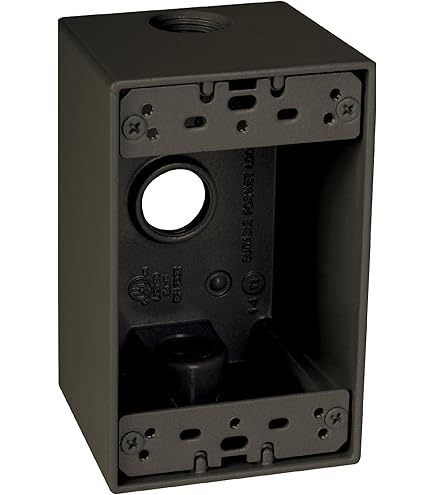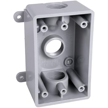 Bell Single Gang Rectangular Die-Cast Metal Gray Outdoor Box Flip Cover Hubbell BELL 5321-0 Weatherproof Outlet Box With Lug, Die Cast Aluminum, 18.3 cu-in, 1 Gang, 4 Outlets Innengewinde und Naben entsprechen den NEMA-Anforderungen. Die hochmoderne Pulverbeschichtung bietet maximale Witterungsbeständigkeit und Kratzfestigkeit., Robuste Aluminium-Konstruktion. hubbell-bell Single Gang 4–1/2 Zoll Ausgänge wetterfest Box, 5322-0 Permalink Hubbell BELL 5321-0 Weatherproof Outlet Box With Lug, Die Cast Aluminum Innennabengewinde entsprechen den NEMA-Anforderungen und wird alle Gewindefittings und Gewindeleitungen akzeptieren. International products have separate terms, are sold from abroad and may differ from local products, including fit, age ratings, and language of product, labeling or instructions.