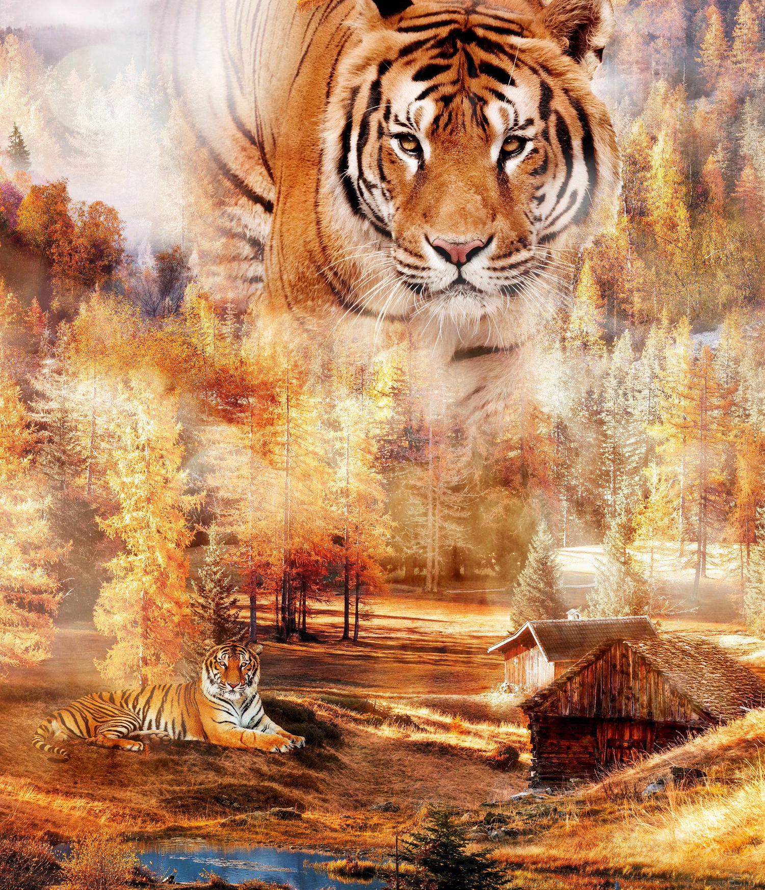 JACK By Kaeppel Mako Satin Digitaldruck Bettwäsche 2 Tlg. Tiger Raubkatze Wald Wild Ocker Herbst Orange