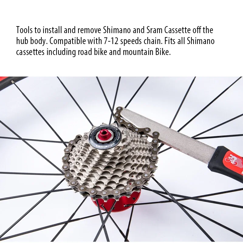Bestellen Sie jetzt, sorgenfrei. Wir sind so zuversichtlich von unserer Produktqualität, dass wir eine lebenslange Garantie bieten können!, Made in Taiwan KOMPATIBILITÄT - Kompatibel mit Shimano- und SRAM-Kassetten für einfache Installation und Entfernung vom Nabenkörper. Funktioniert mit 7- bis 11-Gang-Ketten und passt auf alle Shimano-Kassetten, auch für Rennräder und Mountainbikes. PRÄZISE BEARBEITET - Die Kassettenpeitsche ist präzise bearbeitet, um perfekt auf die Kassettenzähne abgestimmt zu sein, was einen sicheren Sitz gewährleistet. 【Gummibeschichtet】Ausgestattet mit einem gummierten Griff für verbesserten Halt, bietet eine größere Hebelwirkung. Fahrrad Kassette Werkzeug Bikehand Bike Cassette Removal Freewheel Turner With Pedal Wrench Zahnkranzabzieher Shimano Professional 2 in 1 tool kit with chain whip on one head, another head with two 15mm openings. It is perfectly suitable for installing and disassembling cassettes from the hub body, as well as the assembly and disassembly of pedals of cranks without scratching the crank arms Hergestellt aus wärmebehandeltem, hochwertigem Stahl für Langlebigkeit über längere Nutzungsdauer. BIKE HAND Chain Whip and Puller Set - Chain Whip & Circlip Tool