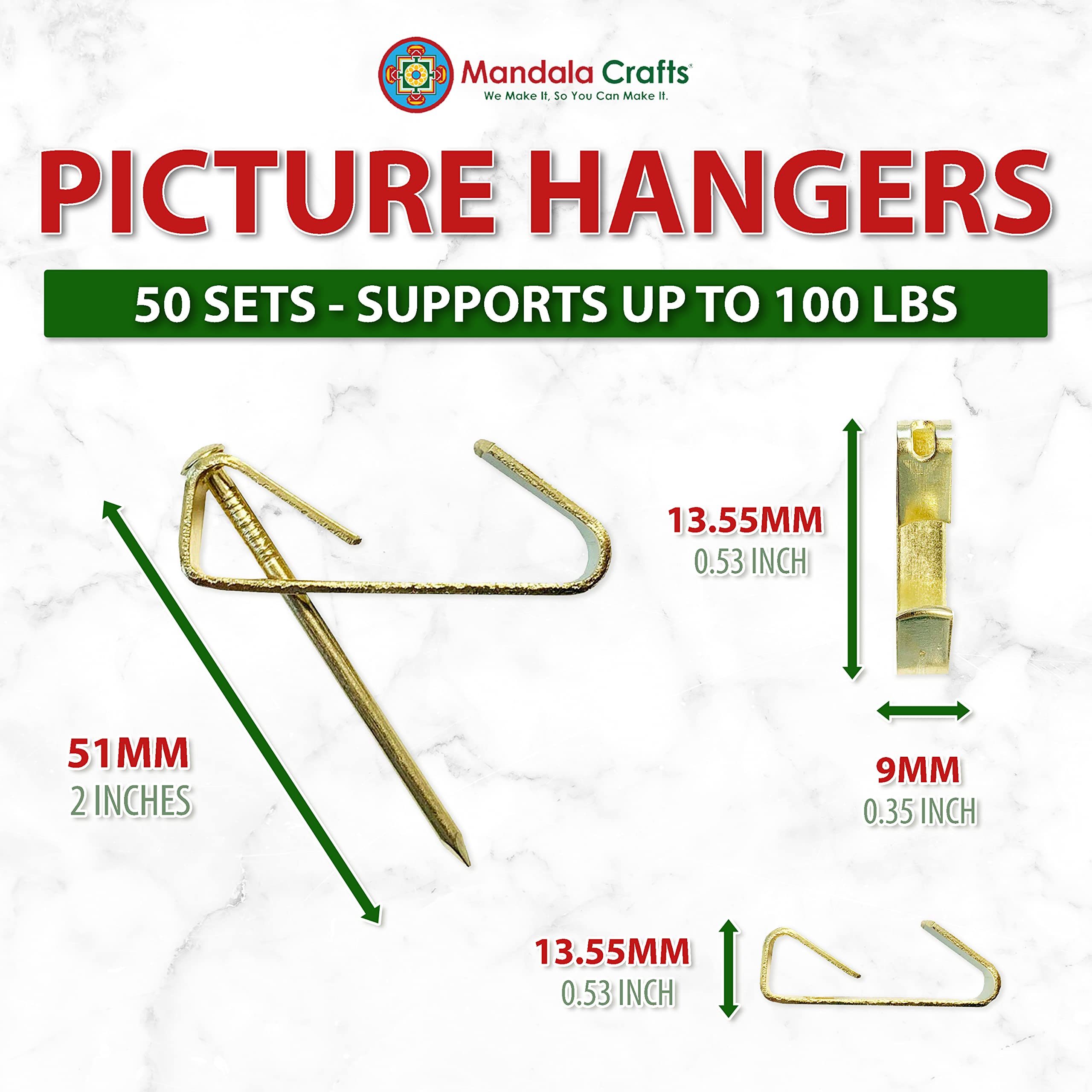 Mandala Crafts Bilderhaken Mit Nagel-Aufhängung Hardware-Kit Für