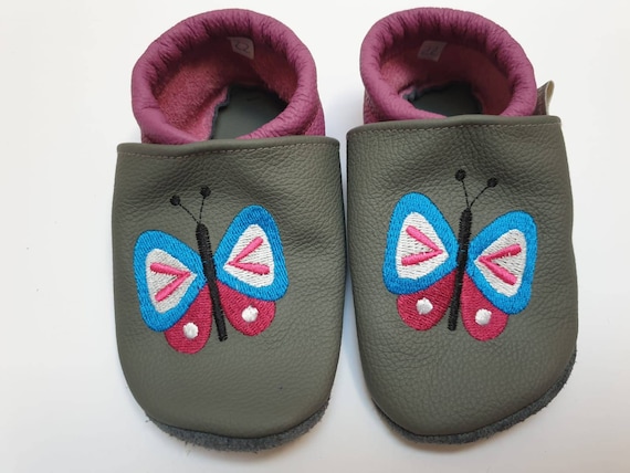 Lederpuschen / Krabbelschuhe / Hausschuhe Löwe / Herzen 1: Lederpuschen dunkelblau-braun, rechts Loewe, links Namen und 2 kleine Tatzen braun Nr. Lederfarben: Wähle Kappe (vorne) und Ferse (hinten) individuell aus. Obermaterial: Leder, Sohle: Gummi, Verschluss: Ohne Verschluss, Absatzform: Flach, Schuhweite: Schmal Die Stickgarnfarben des Stickmotiv können gerne verändert werden! Lederpuschen aus pflanzlich gegerbtem, chromfreiem Leder. Handgemacht. In Deutschland gefertigt. Rutschhemmende Laufsohle. Optimale Passform, wie Barfuß laufen 2: Lederpuschen jeansblau-braun, rechts Loewe, links Namen und 2 kleine Tatzen braun, Lederpuschenstube Nr. Was du vor der Bestellung wissen solltest: Die Maße meiner Stickmotive sind bei allen Größen gleich. Bei kleinen Größen wirken Motive dadurch größer. Liya's Hauschuhe mit Gummisohle - #646 Hund in rehbraun - Lederpuschen Sie sind atmungsaktiv, rutschfest und angenehm zu tragen - ideal für zu Hause, die Krabbelgruppe oder den Kindergarten. Nähte im Inneren der Puschen sind unvermeidbar. Lederpuschen Kinder Bio Lederpuschen Fee - Pantolinos Hobea Krabbelschuhe Manchmal habe ich Rückfragen zur Individualisierung.
