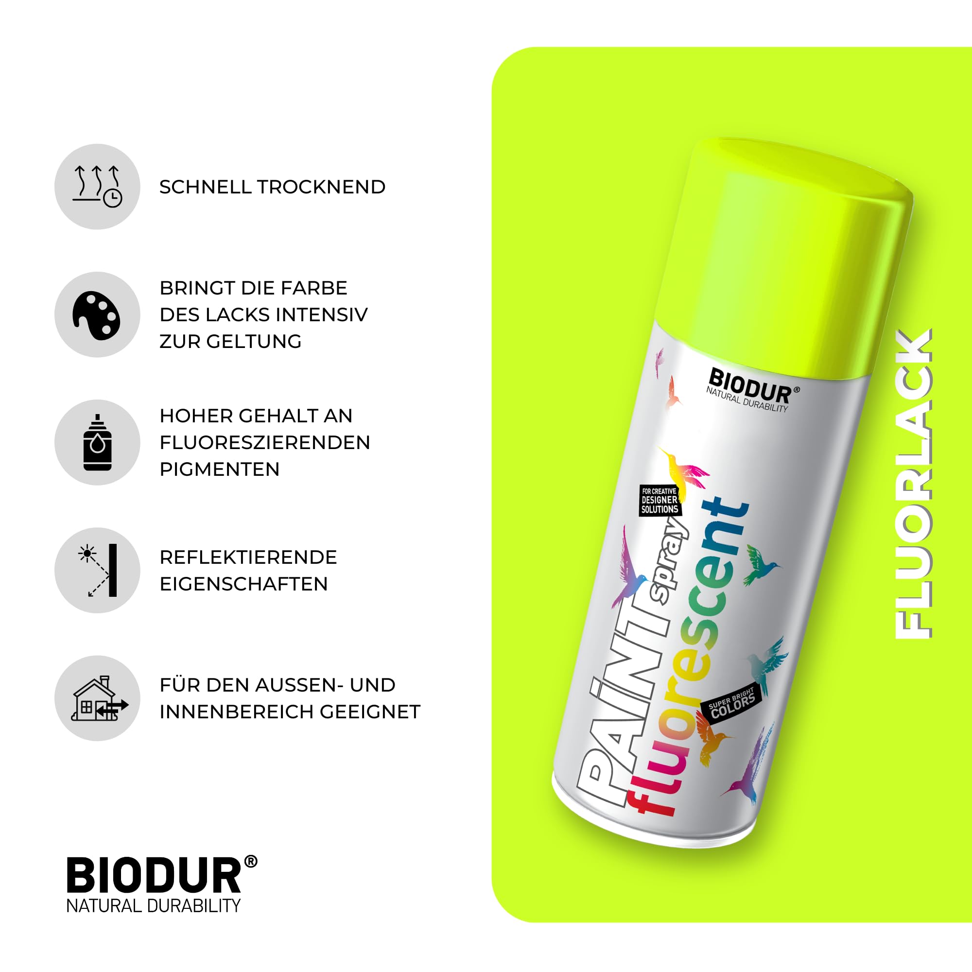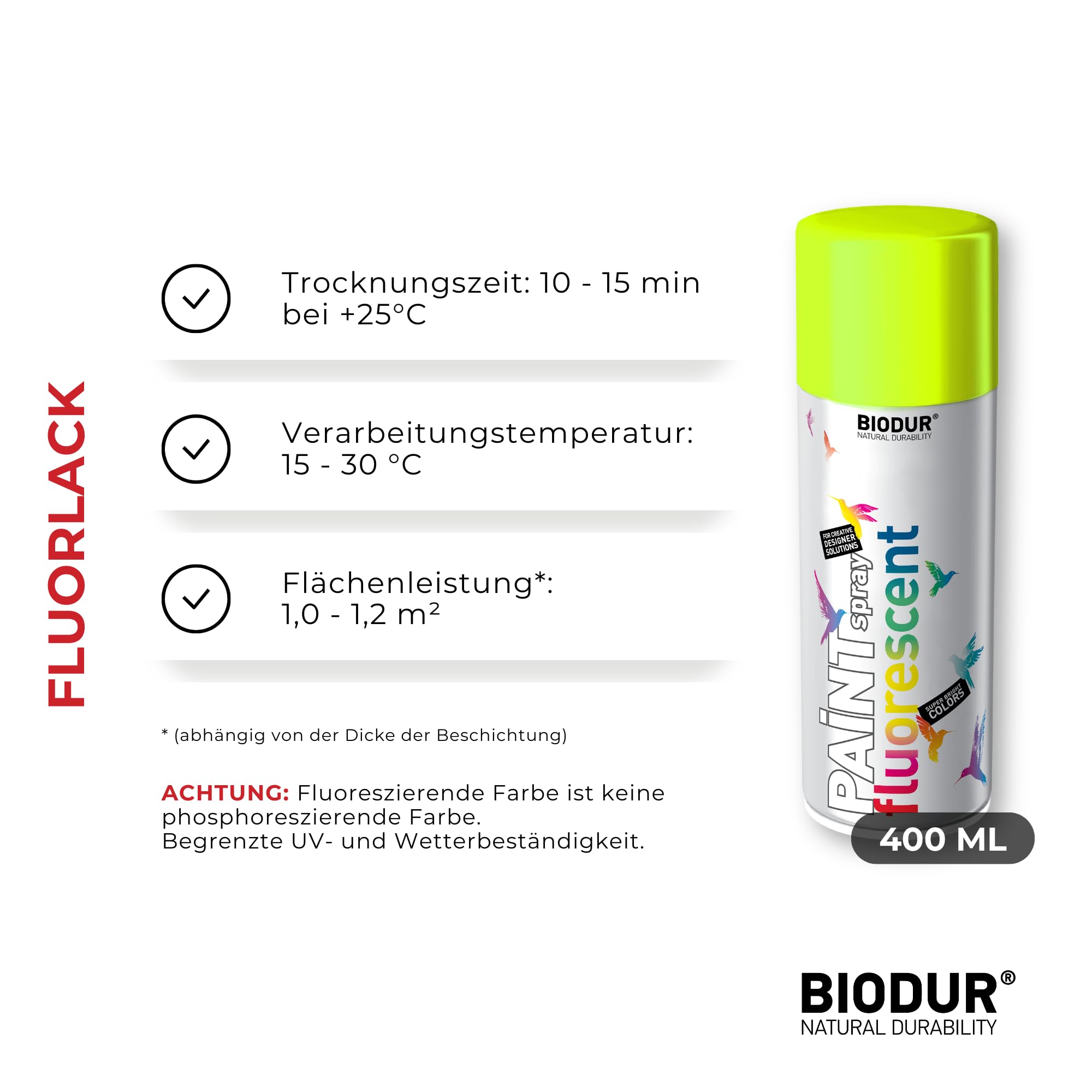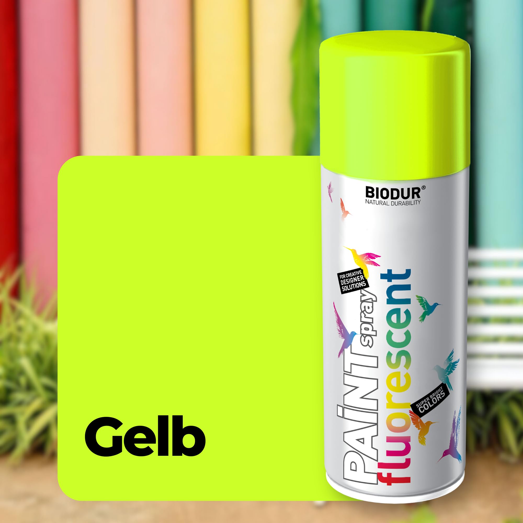 Biodur Markierungsspray Fluoreszierend Acryllack Gelb 500ml, Fluoreszenzlack Forstmarkierungsspray, Sprühlack Witterungsbeständig UV-beständig, Sprühdose Lackspray Neon Farbe Von Bäumen Und Gehwegen