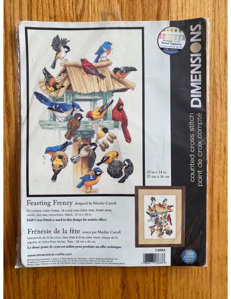 Dimension Gold Collection Cross Stitch Kits Feasting Frenzy Bird Cross Stitch Kit - 18 Count Ivory Aida (10"x14") Counted Cross Stitch Patterns