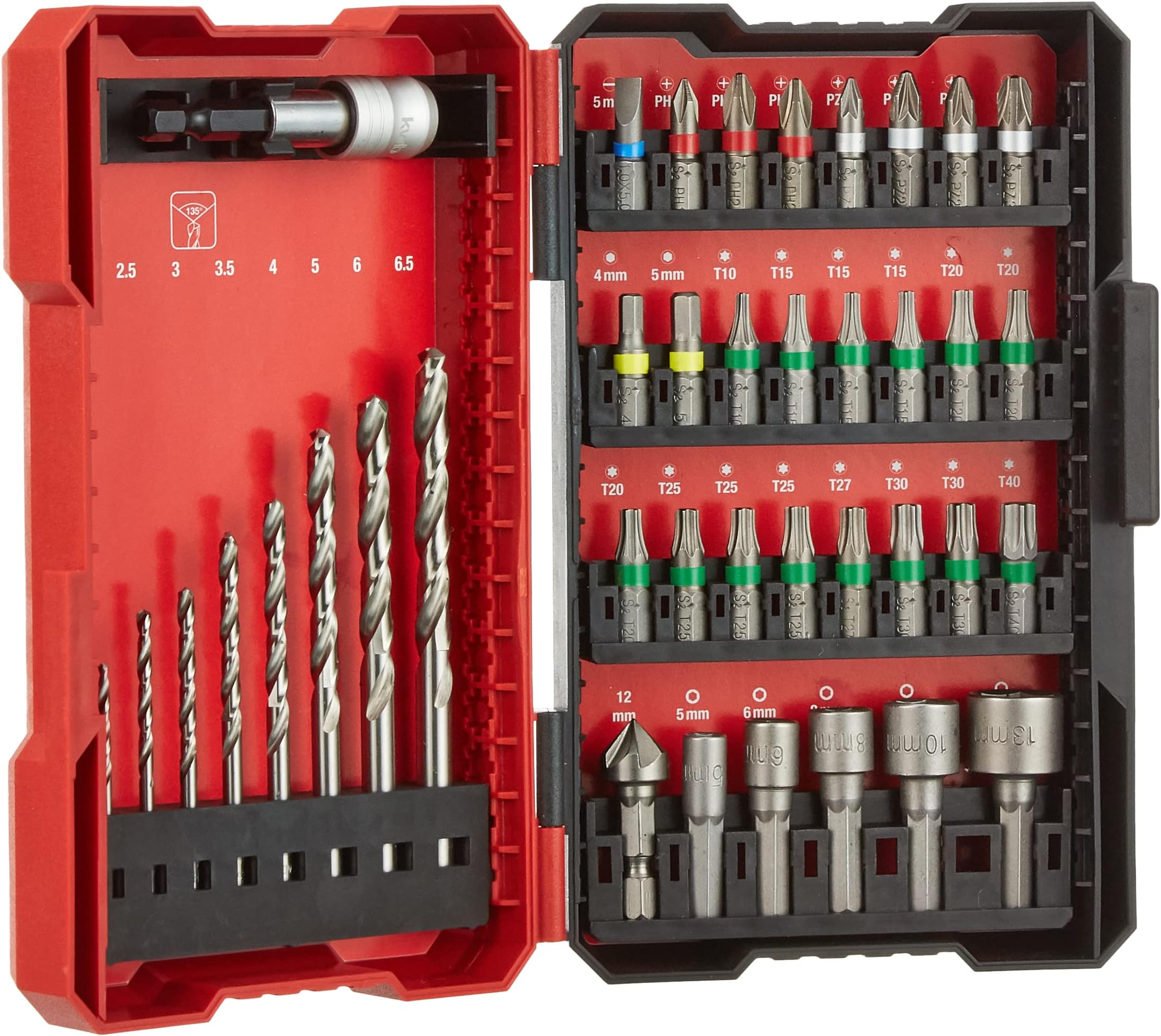 8x Schleifaufsätze, 5x Flachbohrer, 40x Schrauberbits 25 mm Produktbilder Großes Sortiment Mit diesem Mauk Bit-, Bohrer Set 126 tlg. 50 mm PH1 / PH2 / PZ1 /PZ2 / 5 / 6 Makita E-16988 Bohrer-Bit-Werkzeug Set 75-tlg 13x HSS Bohrer Titanium beschichtet, 13x Holzbohre Ebenfalls im Set enthalten ist eine flexible Welle, mit der sich auch schwer erreichbare Stellen erreichen lassen. Haben Sie alles für Ihre Arbeiten parat. DELTAFOX 20V Akku Bohrhammer 3in1 inkl. 2x 2Ah Akku & Schnell-Ladegerät Von Bits bis Bohrer alles vorhanden Mit diesem Koffer können Sie viele arbeiten durchführen. Makita Zubehör LUX Bohrer- / Bit- Und Dübel-Set 400-tlg. Kaufen Bei OBI Bosch Bit Set mit flexibeler Welle, 4x Mauerwerksbohrer Kein Suchen mehr nach dem richtigen Bohrer. 75 mm / PH2 / PZ2 / 5 / 6 18x Sechskantbits (Mutterbits), 5 / 6 / 7 / 8 / 9 / 10 / 11 / 12 /13 mm 3/16, 1/4, 9/32, 5/16, 11/32, 3/8, 7/16, 15/32, 1/2 Viele Schrauberbits / Sechskantbits 4x Schrauberbits 75 mm Zubehör Viele Schrauberbits / Sechskantbits 40x Schrauberbits 25 mm Mit Praktischen Koffer Mit diesem praktischen Koffer brauchen Sie nur noch den Koffer zu holen und können an Ihre Arbeit gehen. So gelingen viele Arbeiten mit Leichtigkeit. Bohrer- und Bit-Doppelbox, 30-tlg. von B1 Discount ansehen MwSt 12 Paar Arbeitshandschuhe mit Nitrilschaumbeschichtung – Flexibilität und Schutz in Einem Diese hochwertigen Sc Das Bit-Set wird in einem praktischen Koffer geliefert, in dem sich die Einzelteile bequem transportieren und sortieren lassen. HSS Bohrer Titanium beschichtet , Robust und Hochwertig Flexible Welle Im Set enthalten ist eine flexible Welle, mit der sich auch schwer erreichbare Stellen bearbeiten lassen. Trockenbau/ Holzbearbeitung/ Stahlbearbeitung und Schleifarbeiten.