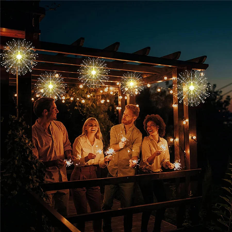 Ein Drücken auf die Timer-Taste der Fernbedienung, genießen Sie die Beleuchtung automatisch für 6 Stunden ein- und für 18 Stunden aus. Die Kugel-Lichterkette hat 200 LED-Lampen. Starburst-Lichter haben 8 Blinkmodi (einschließlich eines Dauerlichtmodus) und 10 einstellbare Helligkeitsstufen... Kupferdraht Feuerwerk Lichter 200LED 98ft 300leds RGB Weihnachtsstring-Lichter außenbereich straße wasserdicht dekora 【Upgraded 200LED & IP67 Waterproof】Upgraded FOOING hanging firework lights have 200 LED beads and are brighter and more dazzling than 120 LED. Hohe Flexibilität: Hergestellt aus flexiblen Kupferdrähten, 200 LED-Sternlichter können leicht in jede Form gebogen werden, wie Blumensträuße, Feuerwerk, Glitzerkugeln, Blumen oder Bäume, schafft eine besondere Atmosphäre für verschiedene Anlässe. Weihnachten Deko BizoeRade 2 Stück Feuerwerk Licht, 200 LED 8 Modi Warmweiß Hängend Feuerwerk Lichterkette,IP65 Wasserdicht Starburst Lichter Mit Fernbedienung Für Weihnachtsdeko Outdoor Dekorative Lichter für drinnen und draußen: Das warmweiße Feuerwerk-Licht von FOOING eignet sich für verschiedene Anlässe und Festivals, wie Weihnachten, Hochzeiten, Geburtstagsfeiern und so weiter. Fernbedienung und 8 Blinkmodi: FOOING Wunderkerzen Feuerwerk Lichter werden mit 2 Fernbedienungen geliefert, kabelloser Empfangsbereich von 10–15 Metern