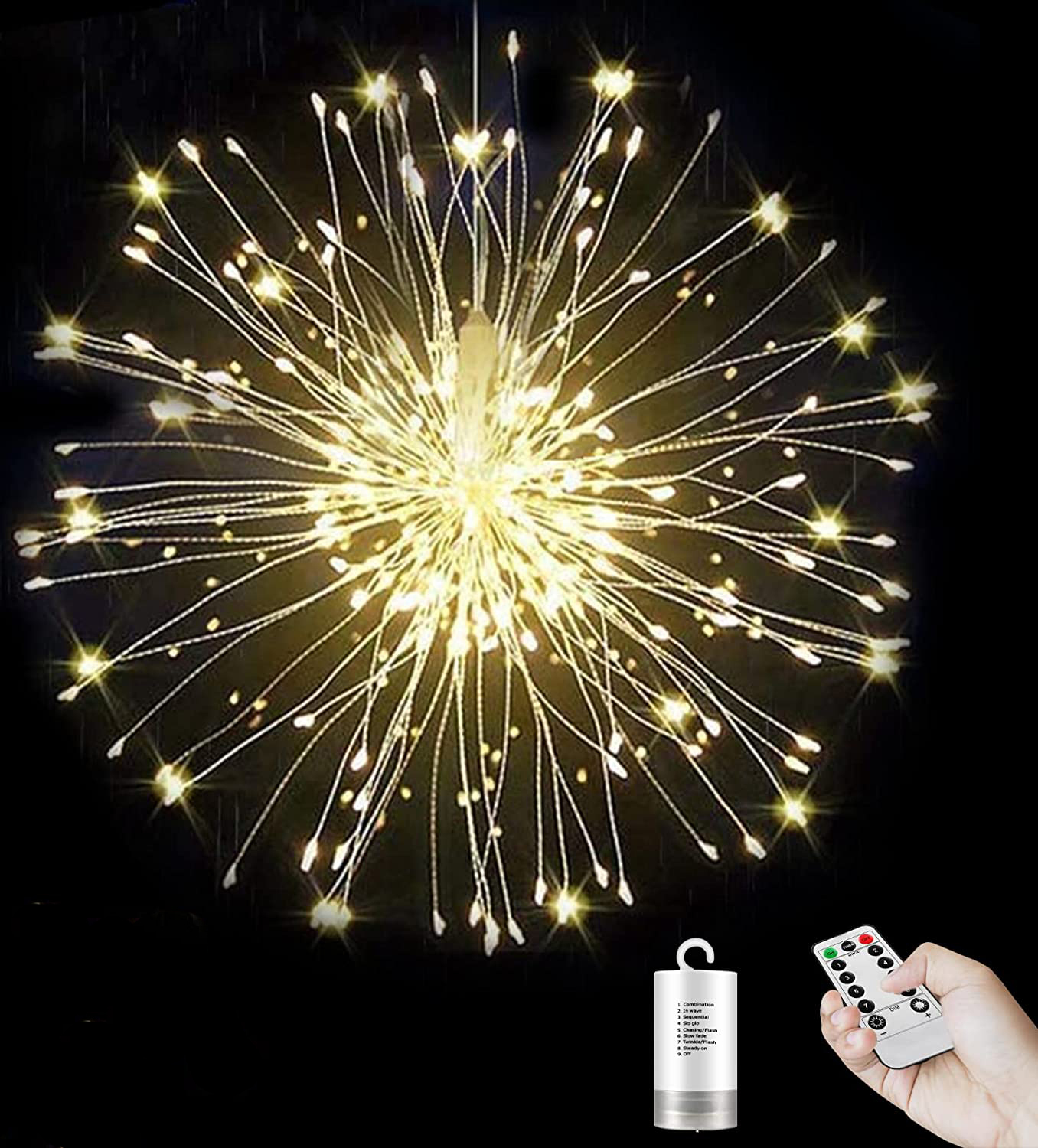 BizoeRade 2 Stück Feuerwerk Licht, 200 LED 8 Modi Warmweiß Hängend Feuerwerk Lichterkette,IP65 Wasserdicht Starburst Lichter Mit Fernbedienung Für