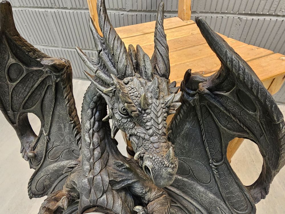 Gothic Deko Figur Drachen Lampe Drache Black Dragon Tisch Leuchte Skulptur Skull 1