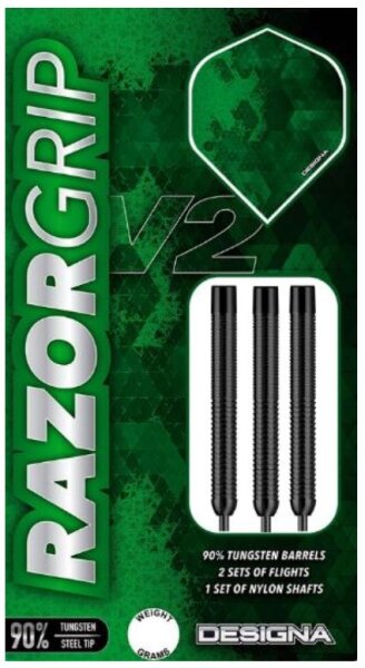 Designa RAZOR GRIP V2 90 %Tungsten Steeldarts 21 Gramm Online Shop und Dartgeschäft Red Dragon Razor Edge Black 20 Gramm Dartpfeile Tungsten Profi Steel Darts Mit Flights Und Schaefte Red Dragon 90 % Wolfram Barrels , 2 Sets (6) Designa Flights Dartpfeile Tungsten Red Dragon Razor Edge Black Steeldarts | 20g | 5-RD2134 Swiss Point Darts 1 Satz Designa Shafts mit Ringen, 2 Satz Designa Flights und Point-Protector. Designa Razor Grip V2 Dartpfeile | M4 | Standard- und Personalisierte Doppelgriff-Dartpfeile-Set | Erhältlich in 22 g, 24 g und 26 g Der Schaft ist aus 90 % Wolfram, das starke, dichte Metall... 48 mm - Diameter ca.