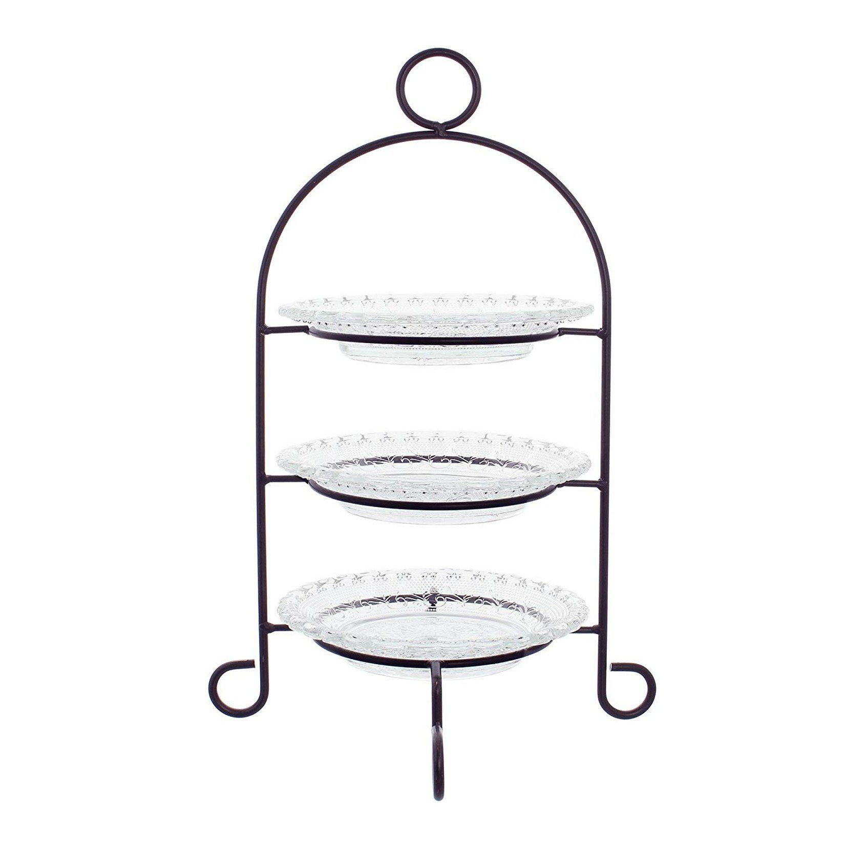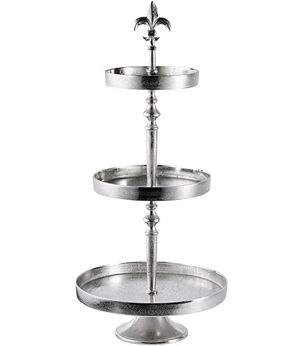 Die Teller mit einem Durchmesser von ca. Gefertigt aus Metall, lackiert in mattem Schwarz Ein stilvoller Allrounder für Ihre Tischkultur – setzen Sie mit dieser Etagere geschmackvolle Akzente! In klassisch nostalgischem Design gestaltet, verbindet sie dekorative Raffinesse mit funktionaler Vielseitigkeit – ideal für festliche Anlässe, den gemütlichen Nachmittagstee oder als Blickfang in Ihrer Wohnküche. In klassisch nostalgischem Design Herzstück der Etagere sind die drei runden Glasteller mit einem fein gearbeiteten Reliefmuster, das bei einfallendem Licht wunderbar schimmert. 3 Glasteller mit aufwändig gearbeitetem Reliefmuster , Vielseitig einsetzbar , Maße ca. Der Gebäckständer besteht aus insgesamt 4 Teilen - einem stabilen Metallgestell in mattem schwarz und 3 Glastellern. Das besondere an den 3 gleich großen Tellern ist das aufwändige Reliefmuster, welches Ihre feinen Speisen edel und stilvoll präsentiert Etagere Mit Glastellern Metall Dekoledenschaft Etagere "Black" Aus Metall, Mattschwarz, 3-stöckg Etagere Metall Diese Kombination verleiht der Etagere eine besonders harmonische Optik, die sich in unterschiedlichste Wohnstile integrieren lässt – von Landhaus bis Vintage. 20 cm lassen sich bei Bedarf leicht entnehmen und reinigen – so bleibt die Handhabung praktisch und unkompliziert. BOLTZE 1014084 Etagere Madita 3er 4tlg. 37 cm (1 Stück Ø 29 x H 45 cm bietet die Etagere auf mehreren Ebenen ausreichend Platz, ohne viel Raum auf dem Tisch einzunehmen. Etagere mit 3 Glastellern von Chic Antique günstig bestellen | SKANDEKO