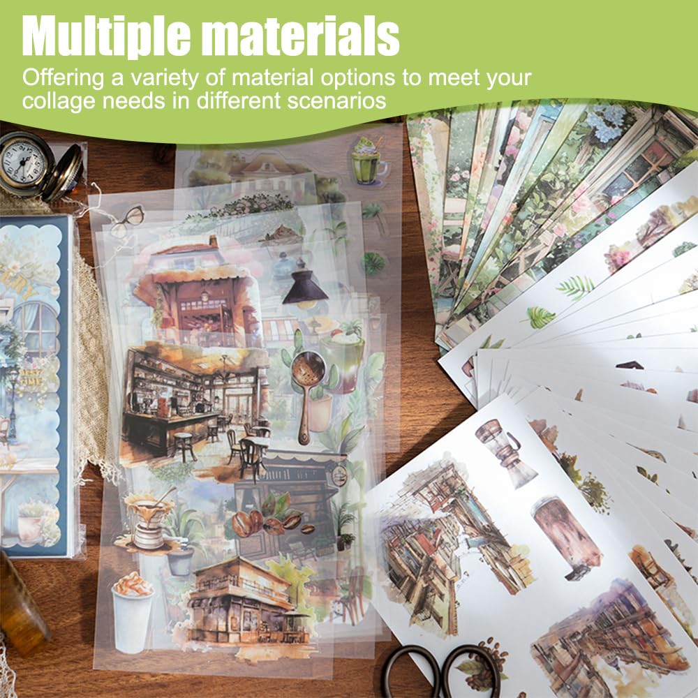 54 Blatt Scrapbook Zubehör-Set, Gartenblumen-Straßenlandschaft