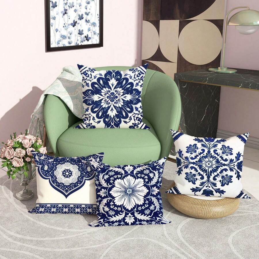 Blaue Kissenbezüge, 45.7x45.7 Cm, Dahlie, Blume, Dunkel Und