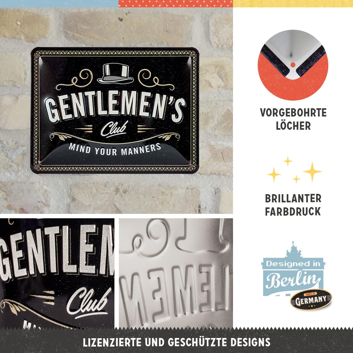 Klicke dafür auf den Link unter dem Produktnamen Besuche den Nostalgic-Art-Store. WE LOVE RETRO: Blechschild im nostalgischen Design aus extra starkem Stahlblech als tolle Dekoration für die Küche, im Wohnzimmer oder in der eigenen Bar Welche Qualitätsunterschiede gibt es bei Blechschildern? Es gibt dünne Blechschilder und die Nostalgic-Art Blechschilder, die auf besonders dickem Stahlblech hergestellt werden. Handelt es sich bei den Artikeln um offizielle Lizenz-Artikel? Ja! BERLIN GESCHENK: für Berliner und Berlin-Liebhaber, besonders hochwertiger und farbenfroher Druck in 1A Qualität Gibt es das Motiv in weiteren Größen? Ja, wir haben eine große Auswahl verschiedener Motive und Größen. PRAKTISCH UND FARBENFROH: robustes Metall-Schild im Format DIN A4 mit plastischer Wölbung, Motivprägung und vorgebohrten Löchern zur kinderleichten Anbringung mit Nägeln an der Wand Farbe. Vintage Design, Blechschilder Sprüche · Marke. Nostalgic-Art · Material. Metall · Thema. Vintage · Empfohlene Anwendungen für Produkt. Dekoration Beatles Poster Nostalgie DDR Blechschild Retro - You Are Leaving The Schild Werkstatt Achte beim Kauf auf das Hologramm auf der Rückseite – für 100 % Originalität. Wie kann ich das Blechschild aufhängen? Jedes Blechschild hat bereits vorgebohrte Löcher und kann einfach aufgehängt werden. Vintage Schild / Retro Spruchschild Wir sind hier nicht bei Wünsch Schau einfach in unseren Amazon-Brandstore. Nostalgic-Art Retro Blechschild, 20 x 30 cm, Berlin Brandenburger Tor - Souvenir & Geschenk-Idee, aus Metall, Vintage Design, Blechschilder Sprüche - Finden Sie alles für ihr Zuhause bei . Gratis Versand durch schon ab einem Bestellwert von 29