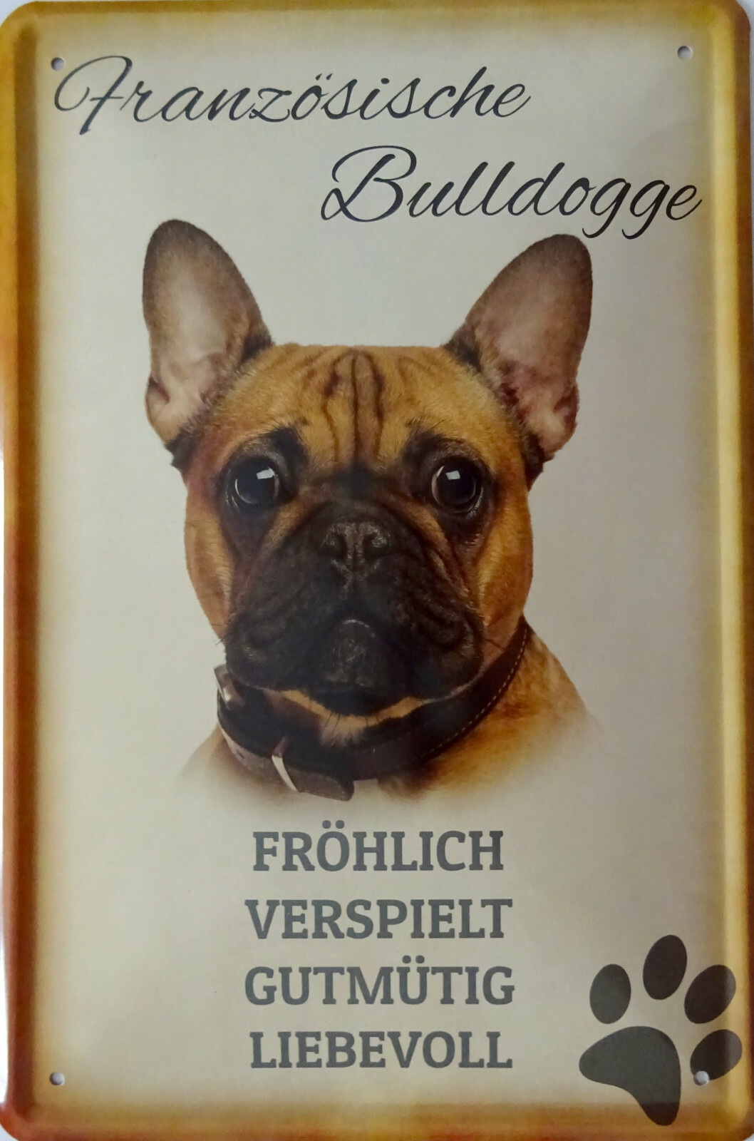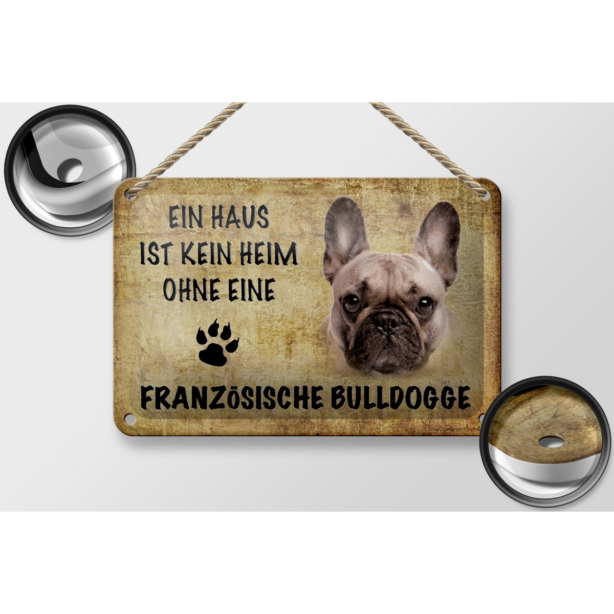 Abgerundete Ecken und umgeschlagene Kanten Hebold Metallschld Schld Blech 30x20cm - Made n Germany - Dackel Es sind dekorative oder informative Wandschilder, Türschilder, Straßenschilder, Gartenschilder, Zaunschilder, Werkstattschilder, Barschilder für das Wohnzimmer, das Schlafzimmer, das Kinderzimmer, die Küche, das Bad, den Flur, das Regal, die Kommode, den Garten, den Zaun, das Gatter, die Garage, die Werkstatt, den Arbeitsplatz u., a. in schickem, neuen, trendigen bzw. Hervorragender Druck mit Lackierung Aufgrund unterschiedlicher Monitoreinstellungen kann es zu Farbabweichungen gegenüber dem Originalprodukt kommen., Made in Germany Dieses charmante Blechschild bringt die Liebe zur Französischen Bulldogge direkt in dein Zuhause! Ob im Flur, im Wohnzimmer oder in der Küche – dieses Schild zieht alle Blicke auf sich und sorgt garantiert für ein Lächeln Blechschild Spruch 18x12cm American Shorthair Ohne Kein Heim - Femer Retro-, Vintage- oder Nostalgie Style. Metallschild Blechschild Wachhund Französische Bulldogge (Stück, 1 St., 1 Schild), Hundeschilder Warnung vor dem Hund % lieferbar - in 4-5 Werktagen bei dir