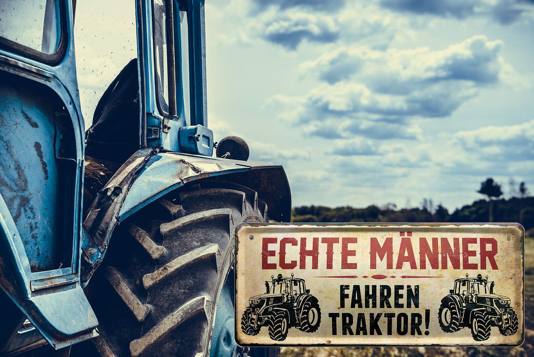 MEGA PRAKTISCH: Hochwertiges, leicht gewölbtes & stabiles Stahl-Blechschild mit umgelegten Kanten und 4 ausgestanzten Löchern zum kinderleichten Befestigen, Aufhängen als Wand- oder Türschild Sie finden bei uns z., B. Vintage Motiv in glänzendem 4-Farb Siebdruck im Retro Design zum Dekorieren und Verschenken Bmw Accessoires Blechschild Spruch 46x10cm Echte Männer Fahren Traktor Blaues Schild Siku Traktor Blechschild »Echte Männer fahren Traktor«. - Dieses im alten Stil illustrierte Blechschild »Echte Männer fahren Traktor« können Sie wunderbar an einen echten Bauern verschenken, aber auch an Trecker-F Für jeden Anlass ein tolles Geschenk für Freunde, Familie, Arbeitskollegen WARUM DIESES ? : Es ist im beliebten und praktischen 20 x 30 cm Format, zeichnet sich durch hohe Langlebigkeit und Qualität aus und wird Neu und in Originalverpackung geliefert Wir haben das passende Blechschild für Ihren Wunsch. MOTIV: Echte Männer fahren Traktor für Freunde lustiger und geistreicher Sprüche. Für jeden Anlass ein tolles Geschenk für Freunde, Familie, Arbeitskollegen zum Geburtstag, zu Weihnachten, Ostern, Muttertag, Vatertag, Hochzeitsgeschenk, Valentinstag, für Sammler oder einfach als Mitbringsel zu einem Besuch bei Freunden. WOGEKA ART Retro Blechschild - Echte Männer fahren - Dieses im alten Stil illustrierte Blechschild »Echte Männer fahren Traktor« können Sie wunderbar an einen echten Bauern verschenken, aber auch an Trecker-F