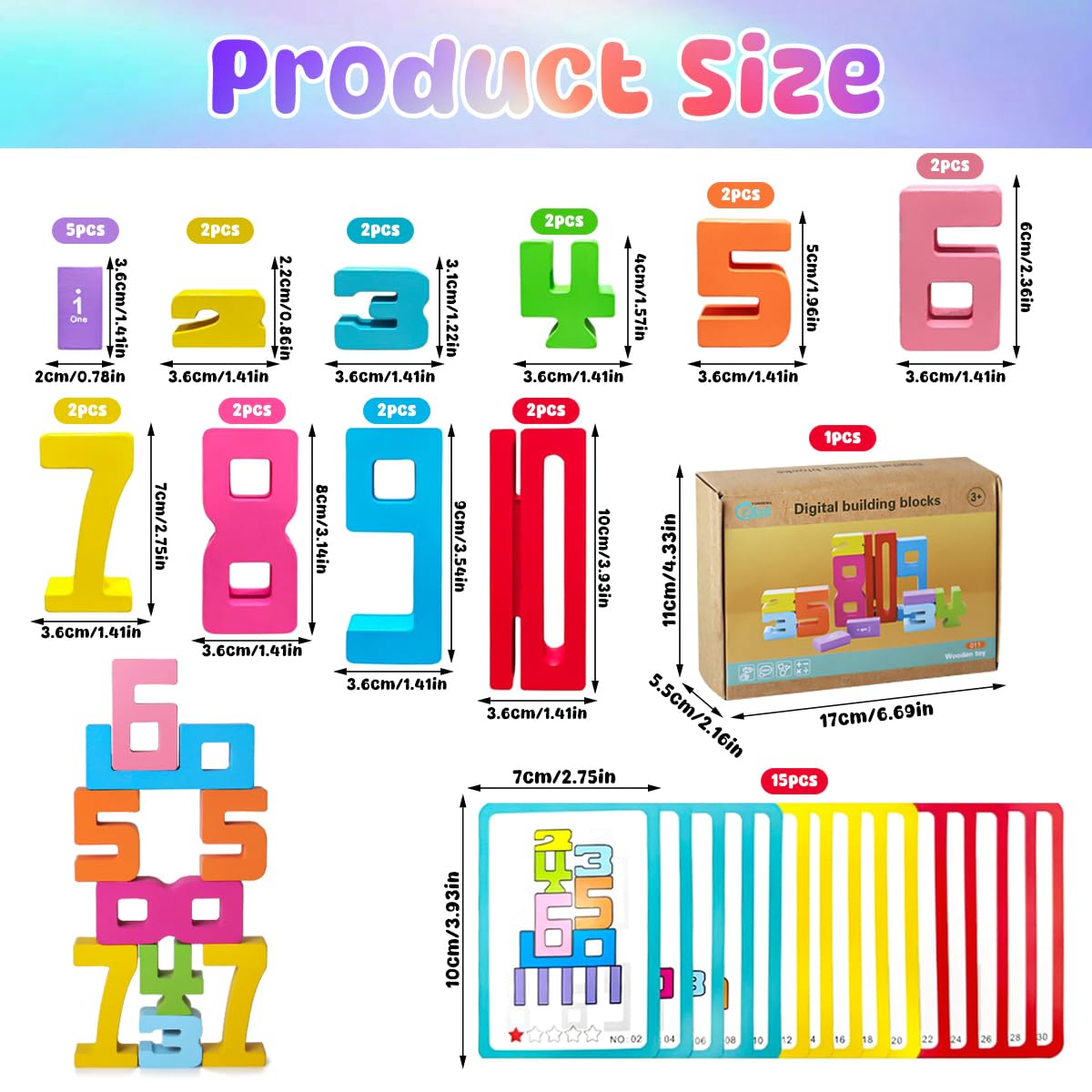 20 Stück Number Blocks, Bausteine Holz Spiel Bunt Stapelzahlen