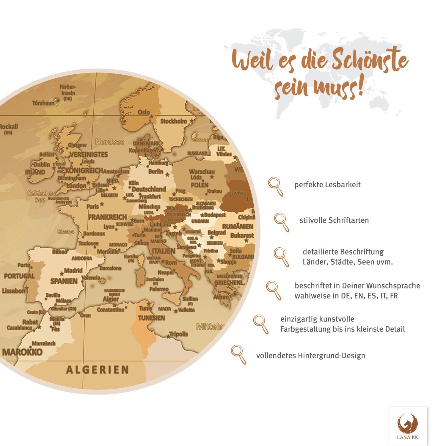 Luxus-Ausführung Massiver Echtholz-Keilrahmen in 4 cm Dicke, der durch seine enorme Tiefenwirkung besonders repräsentativ ist. Produktbeschreibung Leinwandqualität von Lana KK Auf ausschließlich echter Baumwollleinwand aus der Schweiz erscheinen die Weltkarten von Lana KK besonders edel und bedeutsam. Lana KK® Leinwandbild - Piratenkarte Mary - Weltkarte, Pinnwand ✅ QUALITÄT & SERVICE: Stilvolles Design by Lana KK, 🇩🇪 Made in Germany, 🇩🇪 handgefertigter Leinwand-Kunstdruck, Kinderzimmer & Schlafzimmer geeignet » frei von Chemie & Schadstoffen ✅ LEUCHTENDE FARBEN: Edler Kunstdruck mit ökologischen UV-echten Farben auf einer edlen und natürlichen 360g Baumwoll-Leinwand gedruckt » auf einem 4 cm dicken Echtholz-Keilrahmen gespannt, aus nachhaltiger Forstwirtschaft. LANA KK - Luxus Pinnwand Weltkarte - Natur - Deutsch - In 100 X 70 Cm, Stabile Rückwand Zum Pinnen Inkl. Starterkit - Leinwand-Kunstdruck Wandbild Landkarte Netzshopping: Entdecken Sie mühelos Shopping-Angebote auf Netzshopping. Luxus-Ausführung Natürliches Baumwoll-Mischgewebe 370 g/m² mit einer seidig glänzenden Oberfläche. Europakarte Zum Pinnen Lana-KK Weltkarte Blue Ocean, Deutsch, Pinnwand, Leinwandbild Mit Weltkarte Mit Pins Wie auf einer Pinnwand können Sie dann Orte mit Pin oder Fähnchen markieren., Warnhinweise Nicht zutreffend ✅ SO INDIVIDUELL WIE DU: Markiere Deine Reisen und dokumentiere Deine schönsten Erlebnisse. Die Farbskala ist extrem umfangreich, die Graubalance filigran und das Ergebnis im Innenbereich bis zu 75 Jahre UV-widerstandsfähig. Setze Dir neue Ziele und pinne all Deine Erfolge. Unikat Design von Lana KK, mit Fokus auf einen hohen Detailgrad ohne Rauschen und eine perfekten Lesbarkeit., 🇩🇪 deutscher Beschriftung 🇩🇪 Optional mit Korkrückwand Auf Wunsch werden die Weltkarten mit einer dünnen Korkrückwand versehen. Unikat Design von Lana KK®, mit Fokus auf einen hohen Detailgrad ohne Rauschen und eine perfekten Lesbarkeit. Das ideale Geschenk für Reisende, als Hochzeits-Geschenk und auch für jeden Unternehmer. Mit dieser Weltkarte machst Du jedem Globetrotter und Erfolgsmenschen eine Freude ✅ EXKLUSIVER KUNSTDRUCK: Ein echtes Kunstwerk! Die ist besonders unempfindlich gegen Berührungen und Abrieb und sogar feucht abwischbar. Naturholz-Keilrahmen Der Keilrahmen besteht zu 100 Prozent aus europäischem Nadelholz, was trotz seiner Leichtigkeit extrem stabil ist.