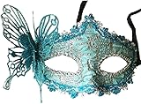 Bristol Novelty Venetian Eye Mask - Blue Side Feather Masquerade Masked Ball - Fasching - Maske - Unisex-Erwachsene