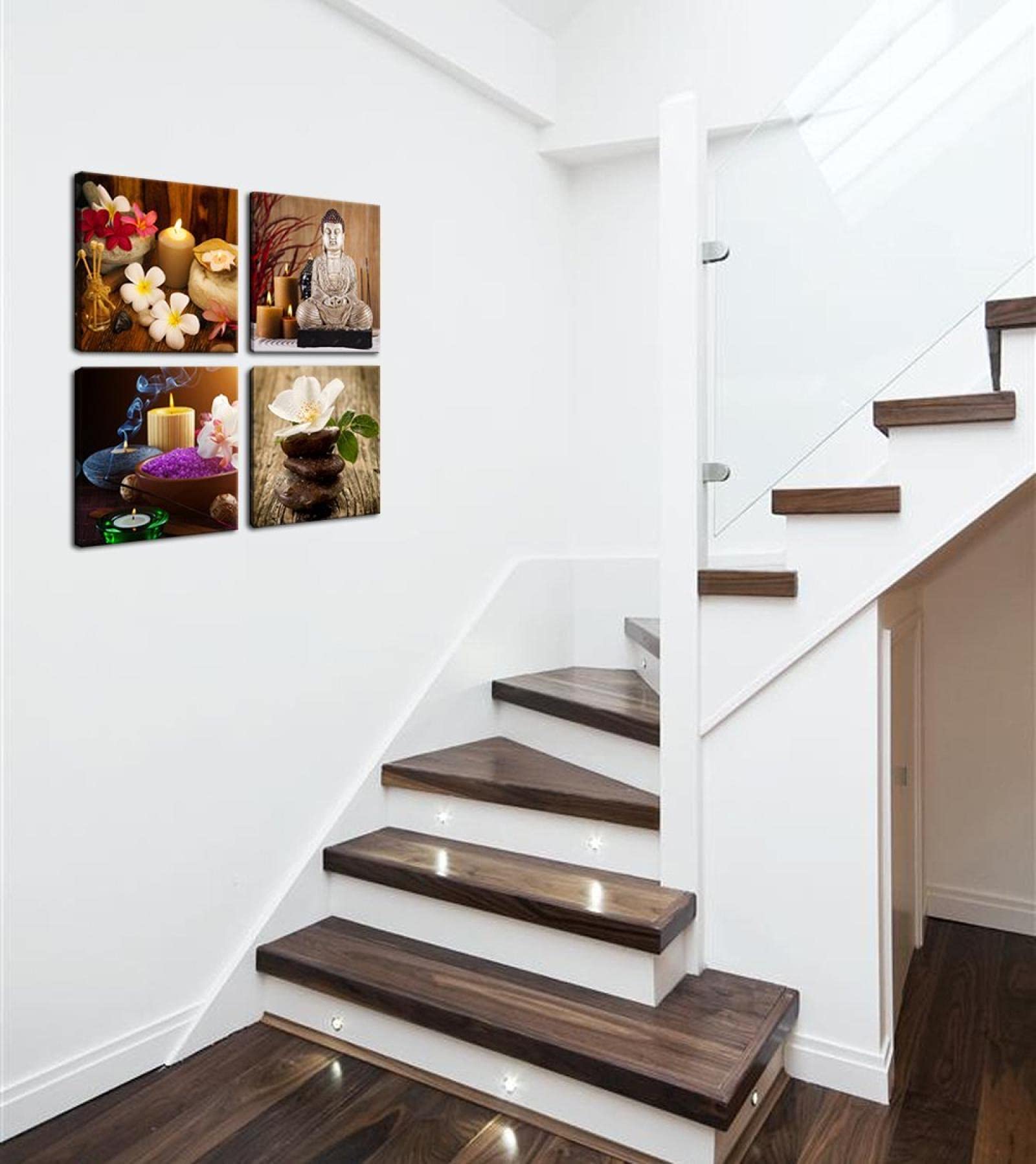Yinaa HD Leinwanddrucke Moderne Zen Blume Stein Poster Thai Buddha Leinwand Gemälde Bild Für Residenz Büro Dekoration 50x50cmx4pcs Rahmenlos