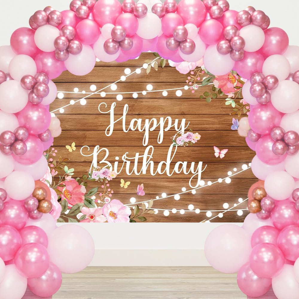 Rosa Blumen Happy Birthday Hintergrund Für Frauen Rustikales Holz