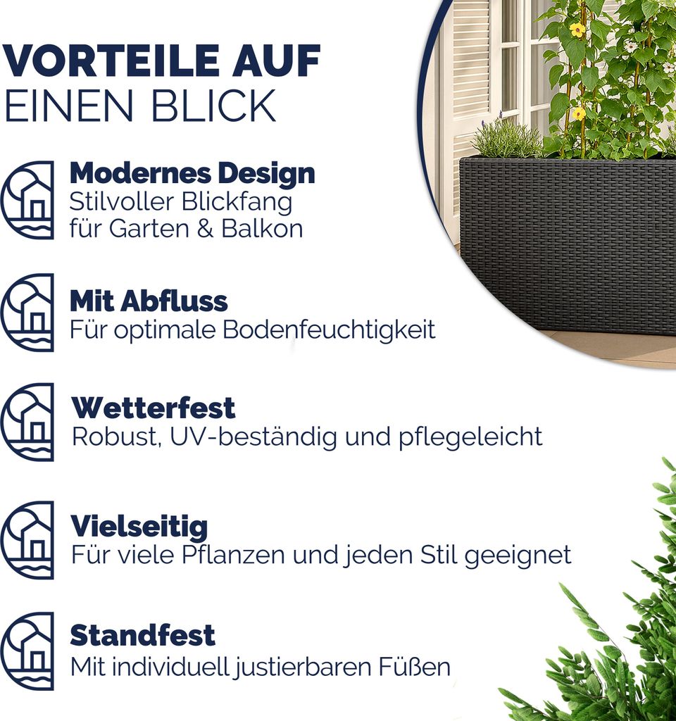 Blumenkasten Für Pflanzen Terrra Groß H27,7 Für Den Innenbereich, Rechteckig, Lang, Schwarz, 30 Liter, 70 X 30 X 27,7 Cm, Klassisches Design, Aus Kunststoff, Für Den Balkon, Anthrazit