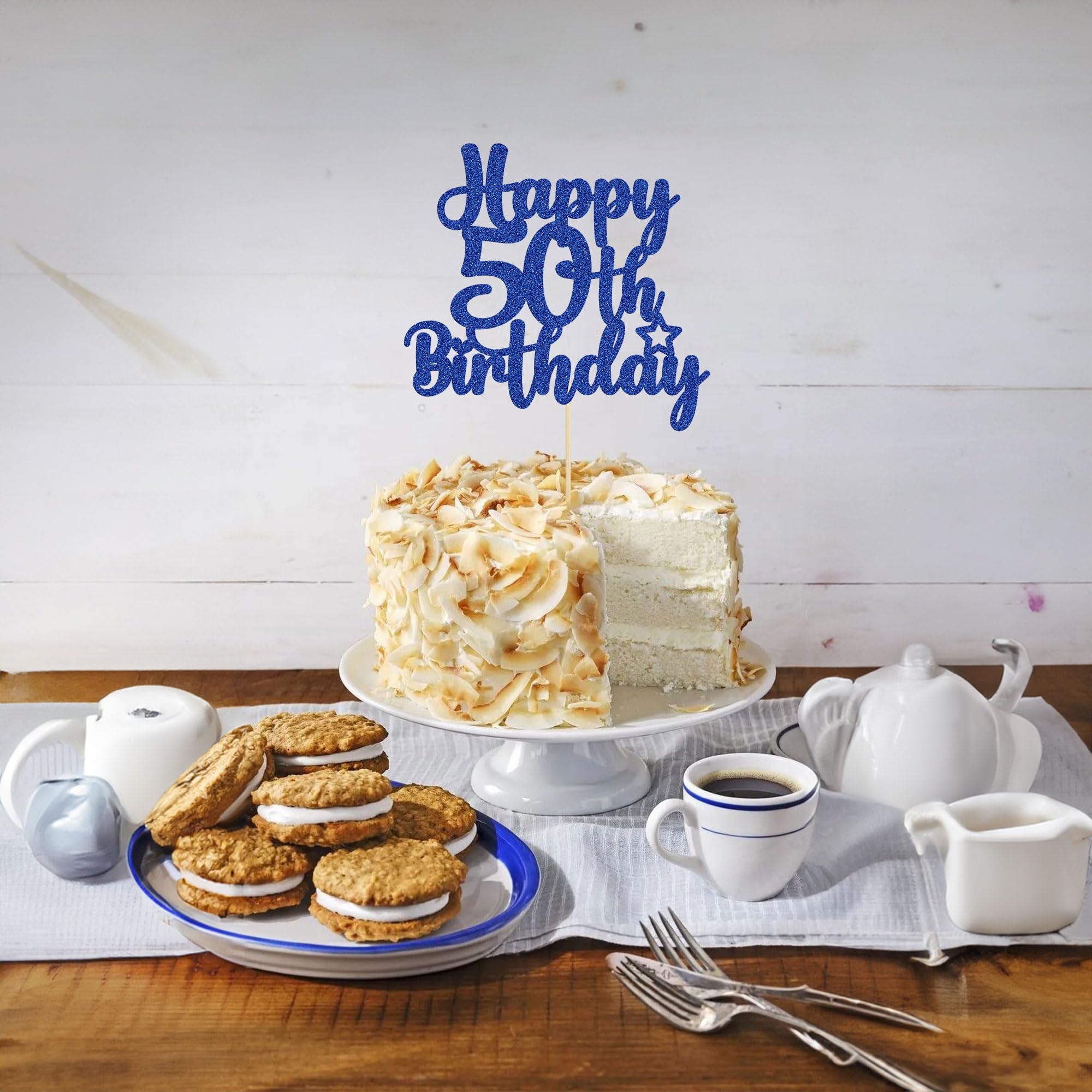 Blumomon 3 Pack Rose Gold Happy 50th Birthday Cake Topper Glitter Happy