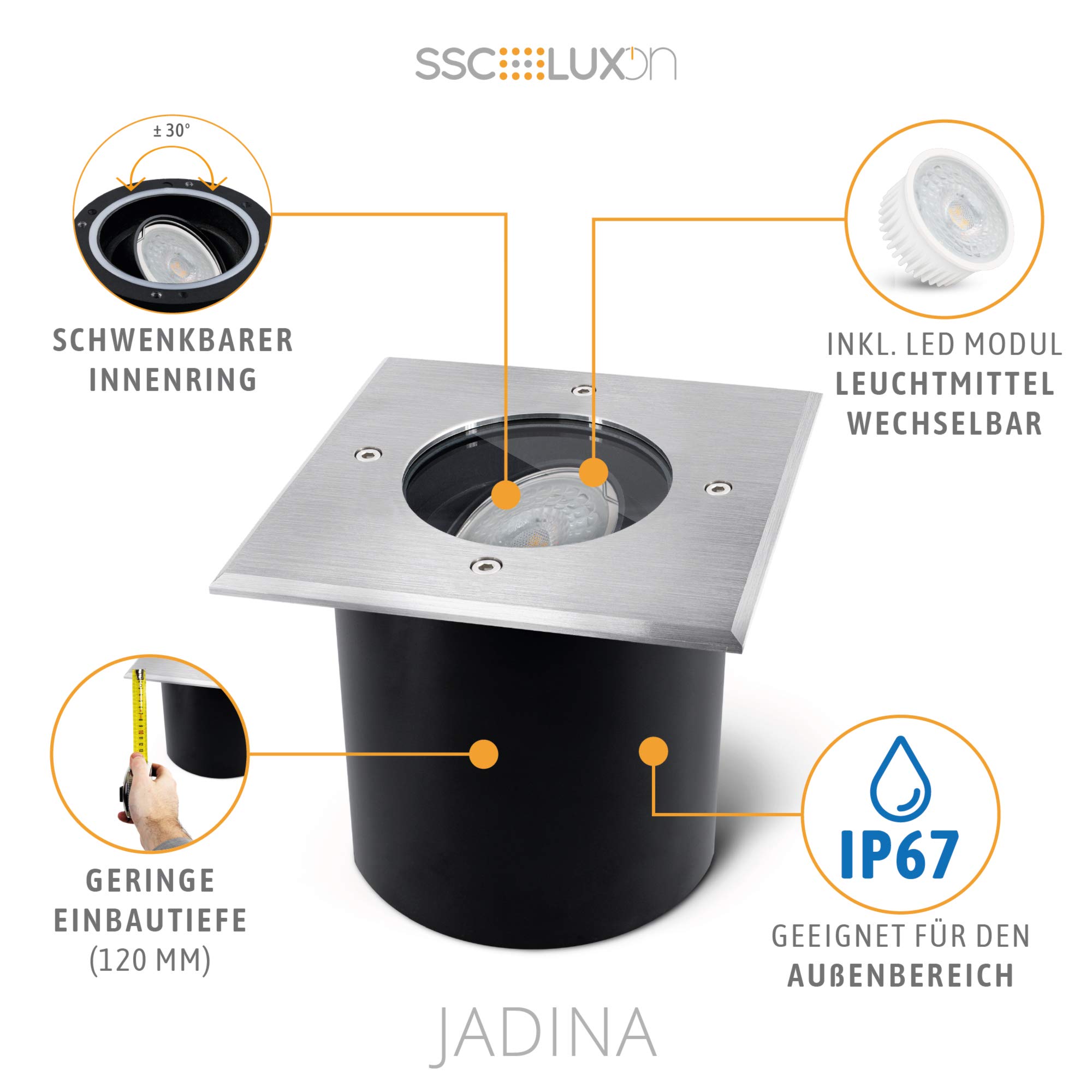 LED Bodenleuchte JADINA Schwenkbar, Flach & Eckig IP67 Mit FourSTEP LED