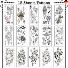 Diese Körper-Tattos sind Hautfreundlich und Wasserfest, halten mehrere Tage und ist einfach wieder entfernbar. 10 Sekunden kann es mit einem Küchentuch oder Lappen einfach abgerieben werden. - Material: Papier, Klebefolie Anwendung: - Motiv ausschneiden und Folie abziehen - Tattoo mit dem Motiv nach unten auf die Haut auflegen - mit einem nassen Schwamm oder Tuch befeuchten - Nach ca. Ebenso gut eignet sich Flüssighandseife, Spülmittel, Duschgel, Make-up Entferner oder spezielles Wundbenzin. - Diese Körper-Tattos sind Hautfreundlich und Wasserfest, halten mehrere Tage und ist einfach wieder entfernbar- Die temporären Tattoos eignen sich für Erwachsene ebenso wie für Kinder und Jugendliche. Die temporären Tattoos eignen sich für Erwachsene ebenso wie für Kinder und Jugendliche. Tattoo-Motiv Rosen Blüten Flower Blumen für Oberarm, Unterarm, Hand, Hals, Oberschenkel, Unterschenkel, Waden, Beine, Dekolleté, Hüfte, Rücken, Bauch und dem ganzen Körper - Temporäre Tattoos / Sticker für alle Gelegenheiten wie Karneval, Fasching, Urlaub, Frühling, Sommer, Party, Strand, Beach oder einfach nur so. Rose Tattoo EROSPA® Tattoo-Bogen Teporär - Aufkleber Eule 15 X 21 C Inkster Tattoo Rose heute – das Rose Motiv symbolisiert heute in erster Linie die Liebe. Die Rosen Vorlage ist ein traditionelles Tattoo Motiv. Blumen in rot – rot steht für die Liebe , aber auch für Entschlossenheit und Tatkraft . Rote Blumen allgemein, und damit sind nicht nur Rosen gemeint, stehen für Liebe. Abmessungen 20-30 Sekunden das Trägerpapier vorsichtig abziehen Tipp zum entfernen: Das Tattoo mit Öl (am geeignetsten Olivenöl oder Babyöl) einreiben., Nach ca. EROSPA® Tattoo-Bogen teporär - Aufkleber Eule 15 x 21 c Abmessungen: 21 x 11,5 cm, Lieferumfang: Tattoobogen Bunte Blume wasserdicht temporäre Tattoo Aufkleber Schönheit frische 3d rote Rose Pflaume Lotus Mo Körper Arm Totem für Frauen