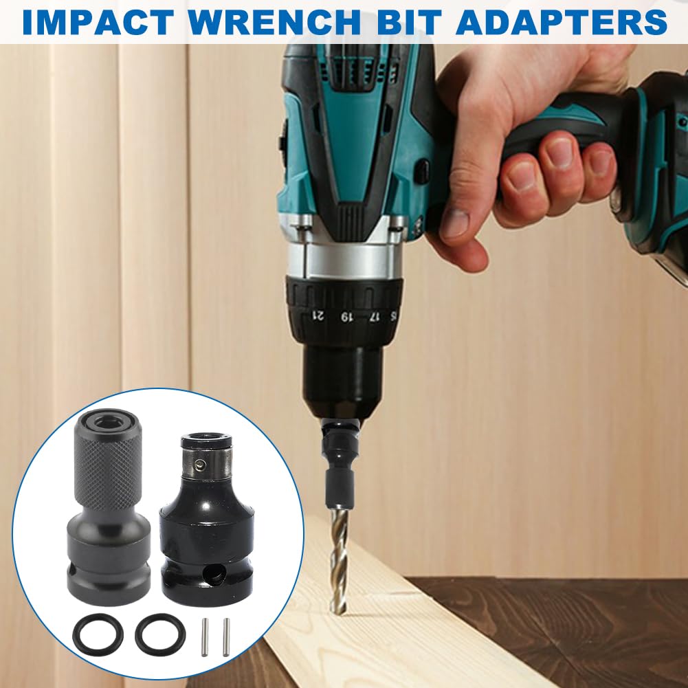 2 Stück Bit Bohrer Adapter, Bithalter Stecknuss Adapters Bohrfutter Satz, Schlagschrauber Zubehör Set 1/2 Vierkantantantrieb Auf 1/4 Sechskantschaft Für Ratschen Schraubern Bohrmaschinen (B