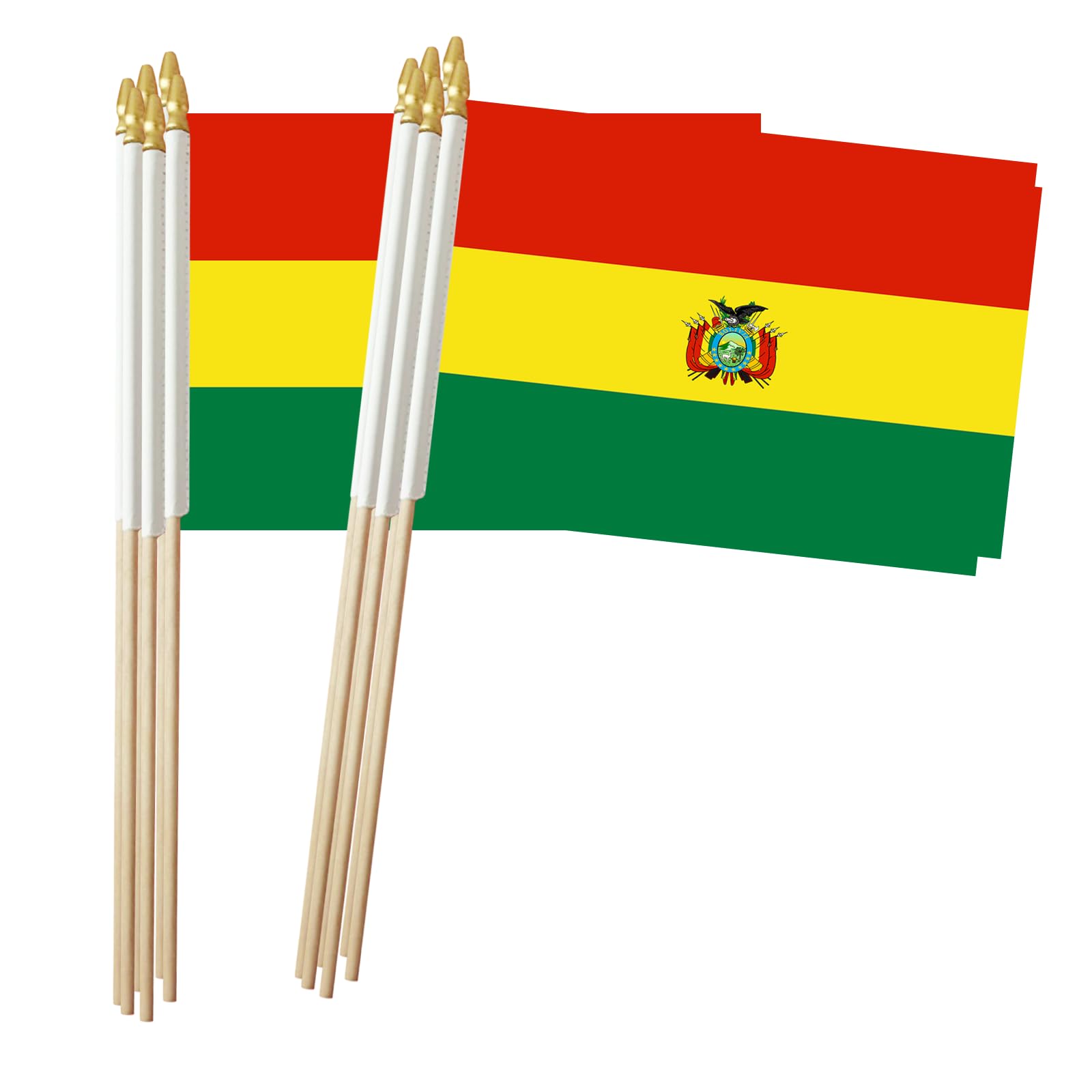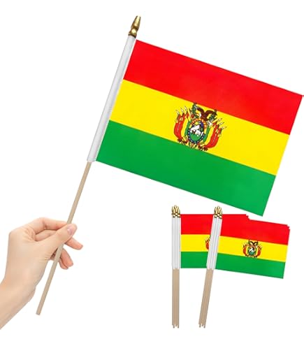 Sie sind perfekt für Hände zum Winken oder Einsetzen in den Boden Hinweis: Unsere Fahnen und Fahnenmasten sind getrennt und Sie müssen sie selbst zusammenbauen. Spezifikationen – 20,3 x 30,5 cm Stockflaggen, 45,2 cm Holzstab mit goldener Speerspitze., Langlebig – importiert. Große Größe: Jede Flagge misst 20,3 x 30,5 cm, 45,2 cm Holzstab, länger als die meisten Fahnenmasten der gleichen Länderflagge, bietet erhebliche visuelle Wirkung. Bolivian-Flagge, kleine Mini-Handflaggen, kleine Bolivian-Flagge, 12 x 20,3 cm, 12 Stück, Party-Dekorationen für Paraden, Weltmeisterschaften, Festival-Veranstaltungen Bolivian-Flagge, Kleine Mini-Handflaggen, Kleine Bolivian-Flagge