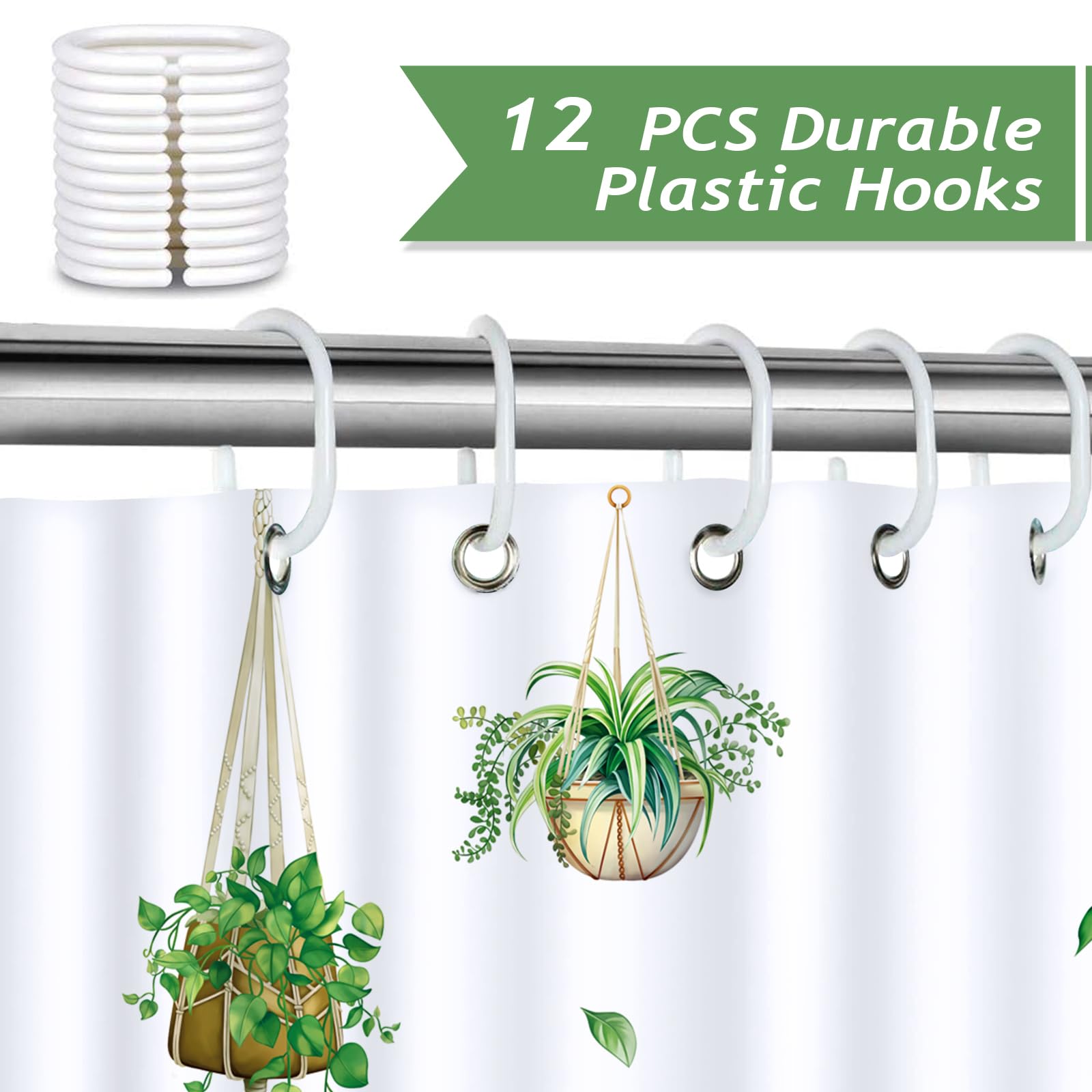 Bonhause Duschvorhang Grüne Topfpflanzen Tropische Pflanzen Blätter Duschvorhänge 180 X 180 Cm Anti-Schimmel Wasserdicht Polyester Stoff Waschbar Bad Vorhäng Für Badzimmer Mit 12 Haken