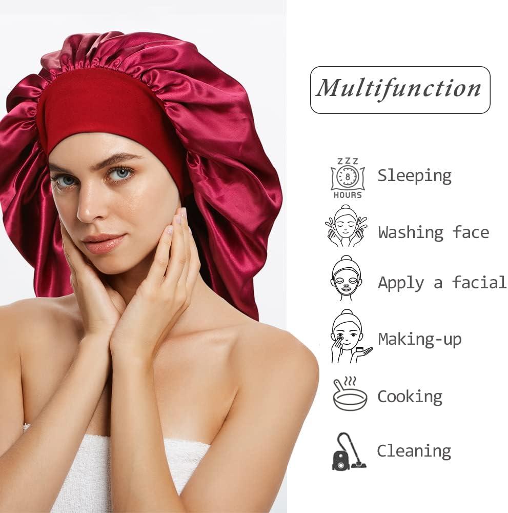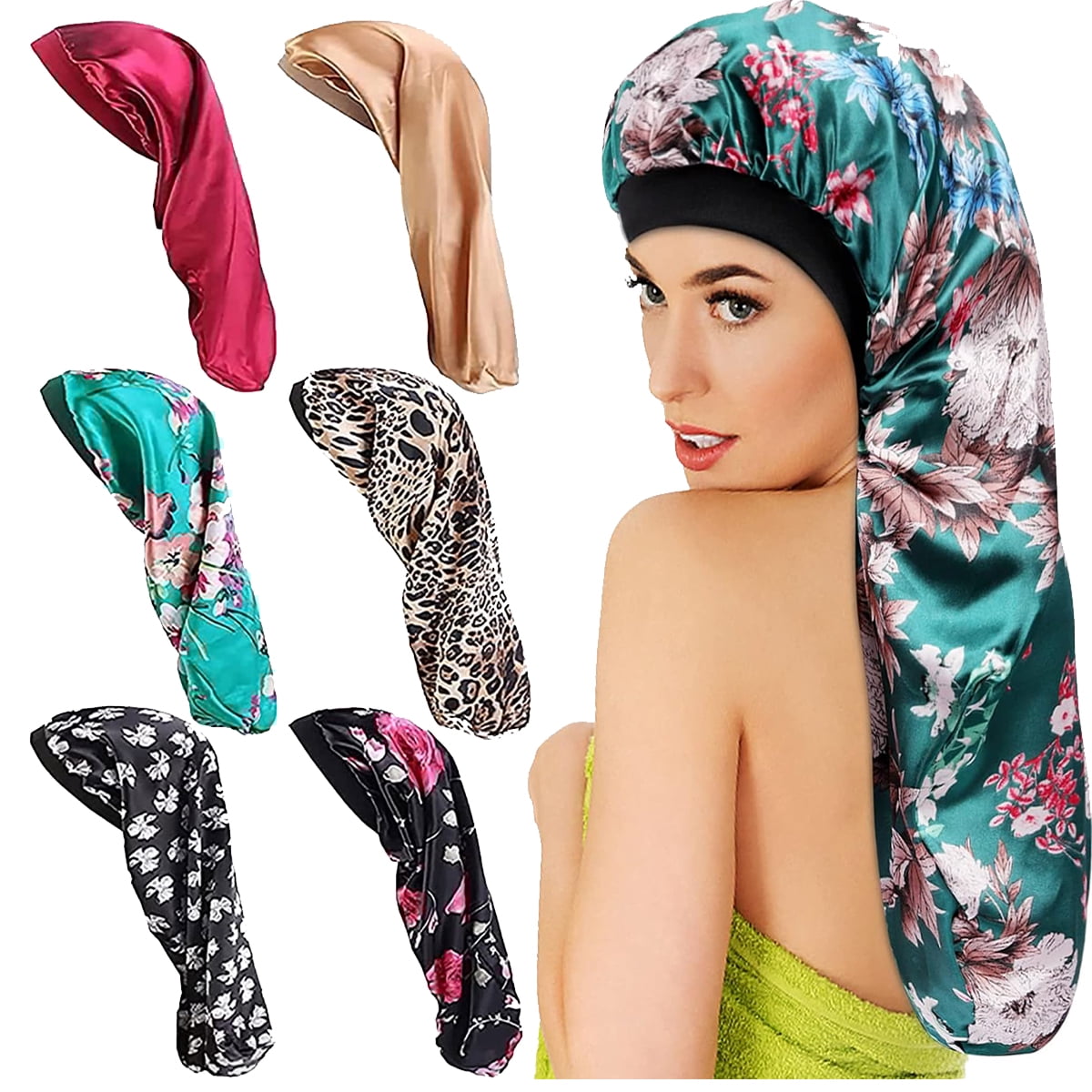 SATINIOR 6 Pcs Long Hair Satin Bonnet For Sleeping Extra Large Sleep Braid Bonnet Elastic Band Silk Night Sleep Hat For Women Long Curly Hair Braids Multi