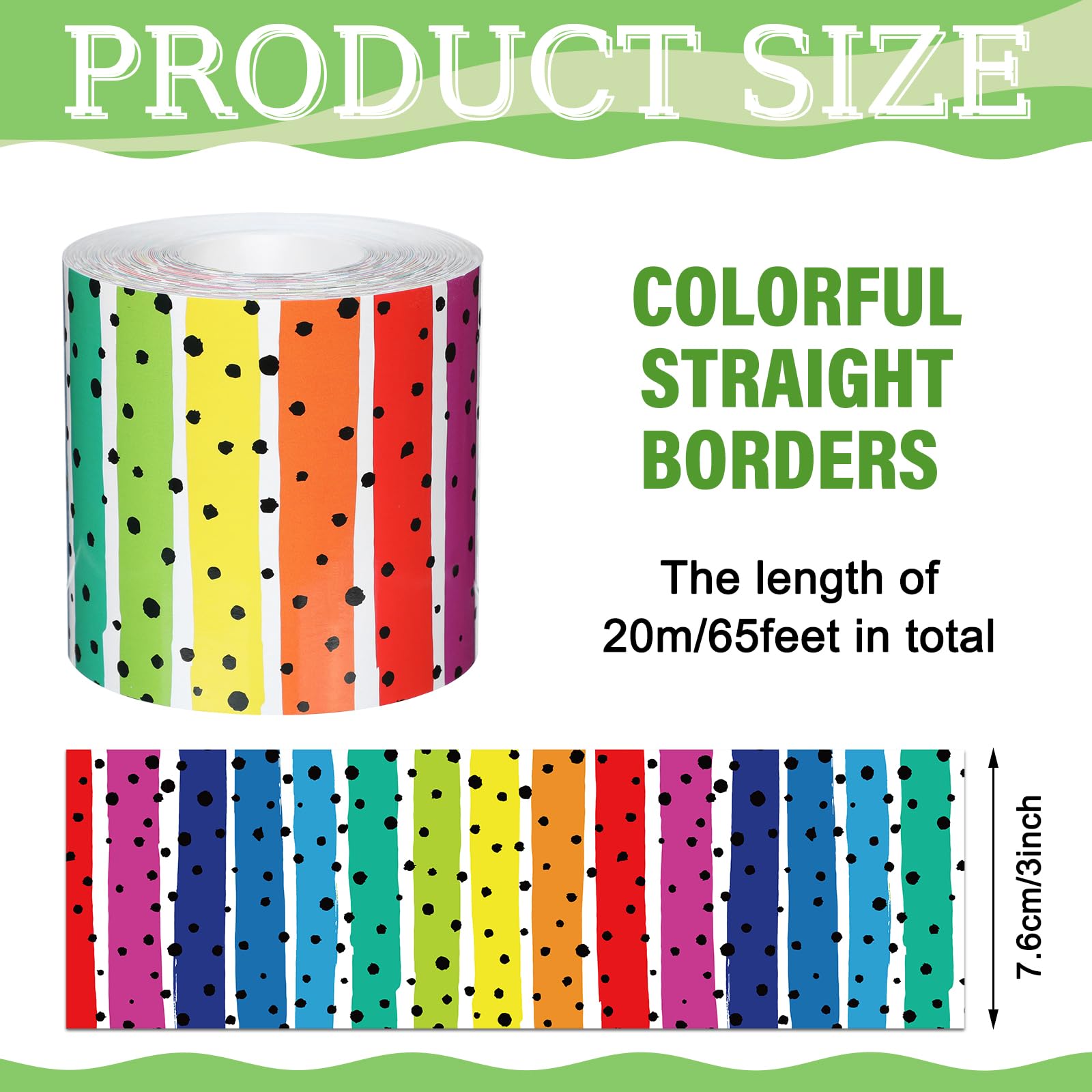 Zonon Klassenzimmer Pinnwand Bordüre 65 Fuß Gepunktete Streifen Gerade