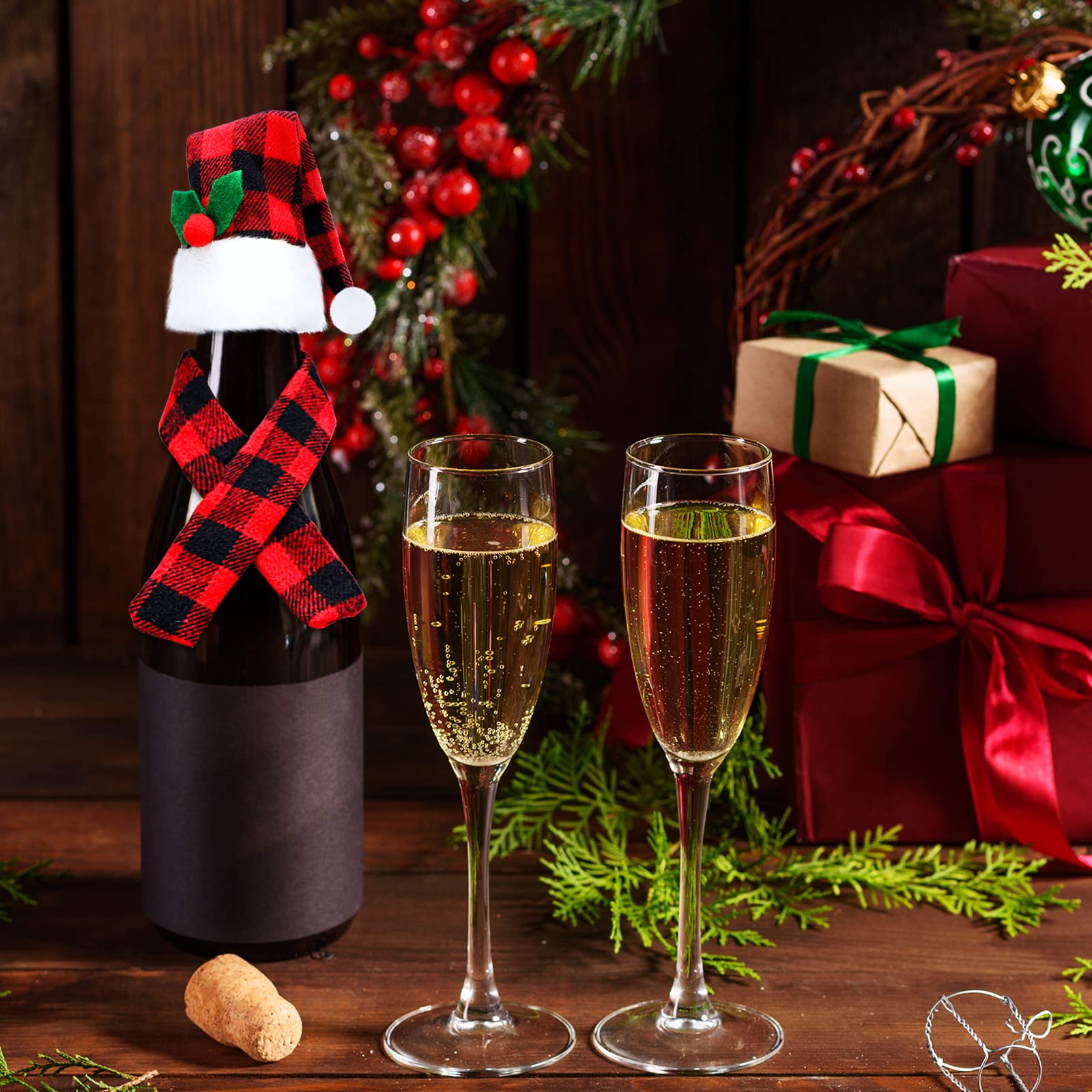 12 Pack Christmas Wine Bottle Cover Set, Christmas Buffalo Plaid Santa Hats For Wine Drink Bottle Tops Toppers, 6Pcs Mini Xmas Santa Hat + 6Pcs Christmas Bottle Santa Scarf For Wine Bottle Decoration