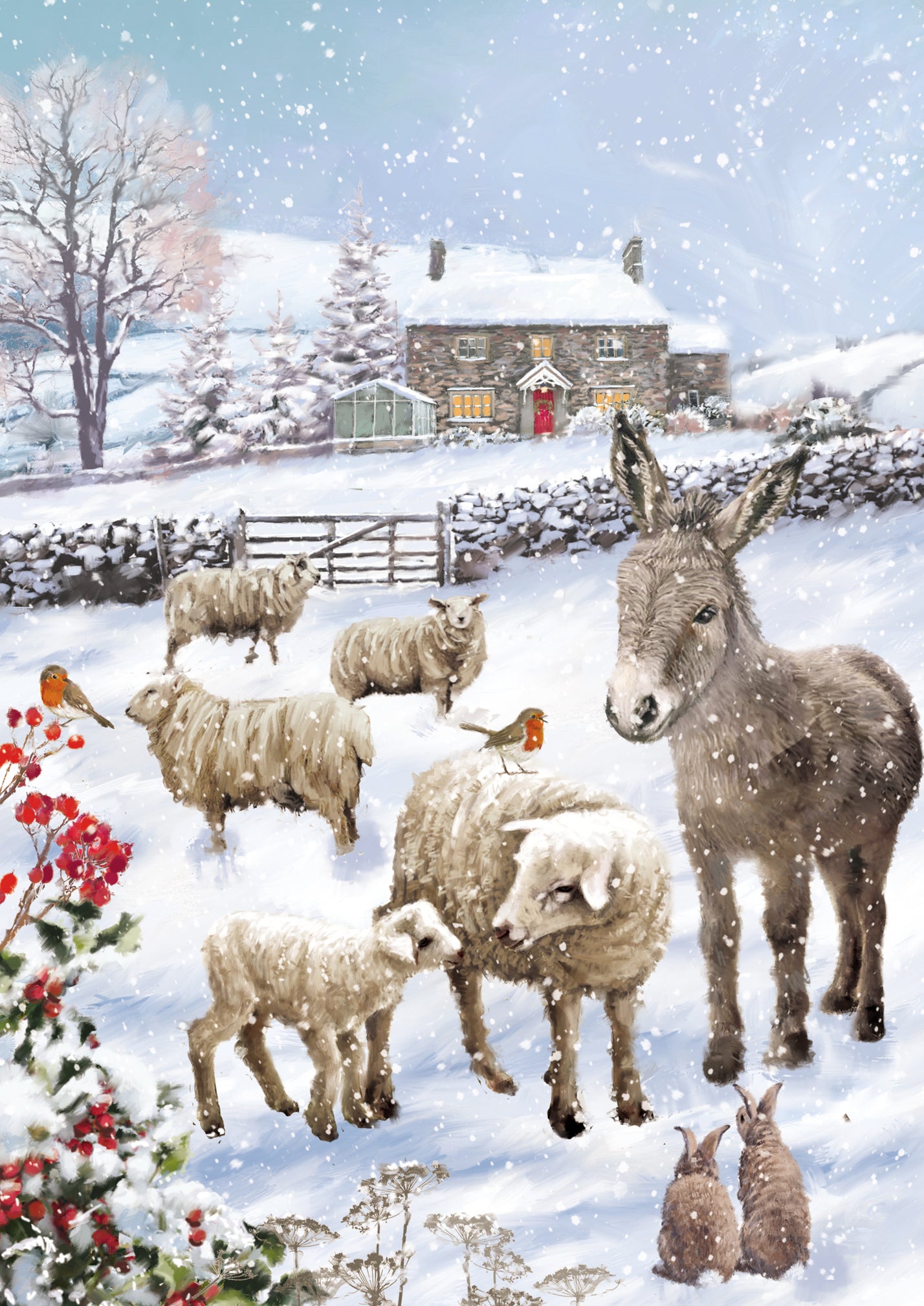 Box Of 20 Sheep & Cows Shelter Fairdeal Charity Christmas Cards Boxed
