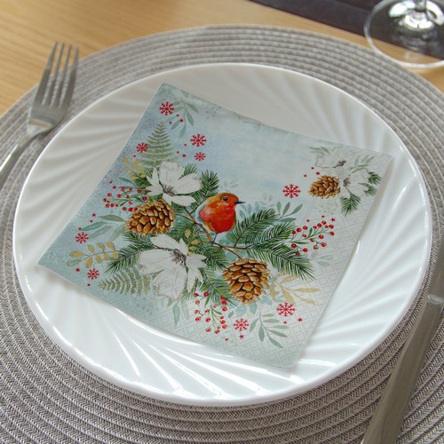 Ein schöner und dekorativer Hingucker auf der gedeckten Kaffeetafel. 20er Pack Servietten Rotkehlen & Weihnachtslaterne im Schnee, 33 x 33 cm - Große Auswahl an Weihnachtsdeko ✓ Motivservietten für die Weihnachts- & Winterzeit Lunchservietten mit weihnachtlichen Motiven Größe: 33 x 33 cm / gefaltet 16,5 x 16,5 cm Inhalt: 20 Servietten / 3-lagig Material: 100% FSC, chlorfrei gebleicht, Farben auf Wasserbasis. Mod Podge 20 Servietten Robin On Branch - Rotkehlchen Auf Ast Mit Blätter Weihnachts Servietten Motiv: Rotkehlchen / Farbe: weiß, orange, braun Weihnachten - Anlässe - Taschentücher - Toilettenpapier